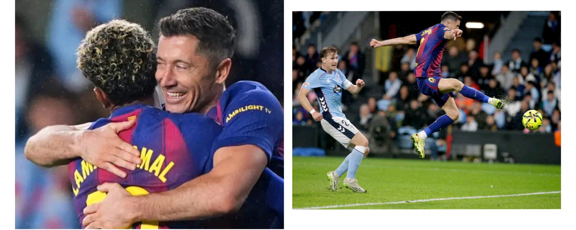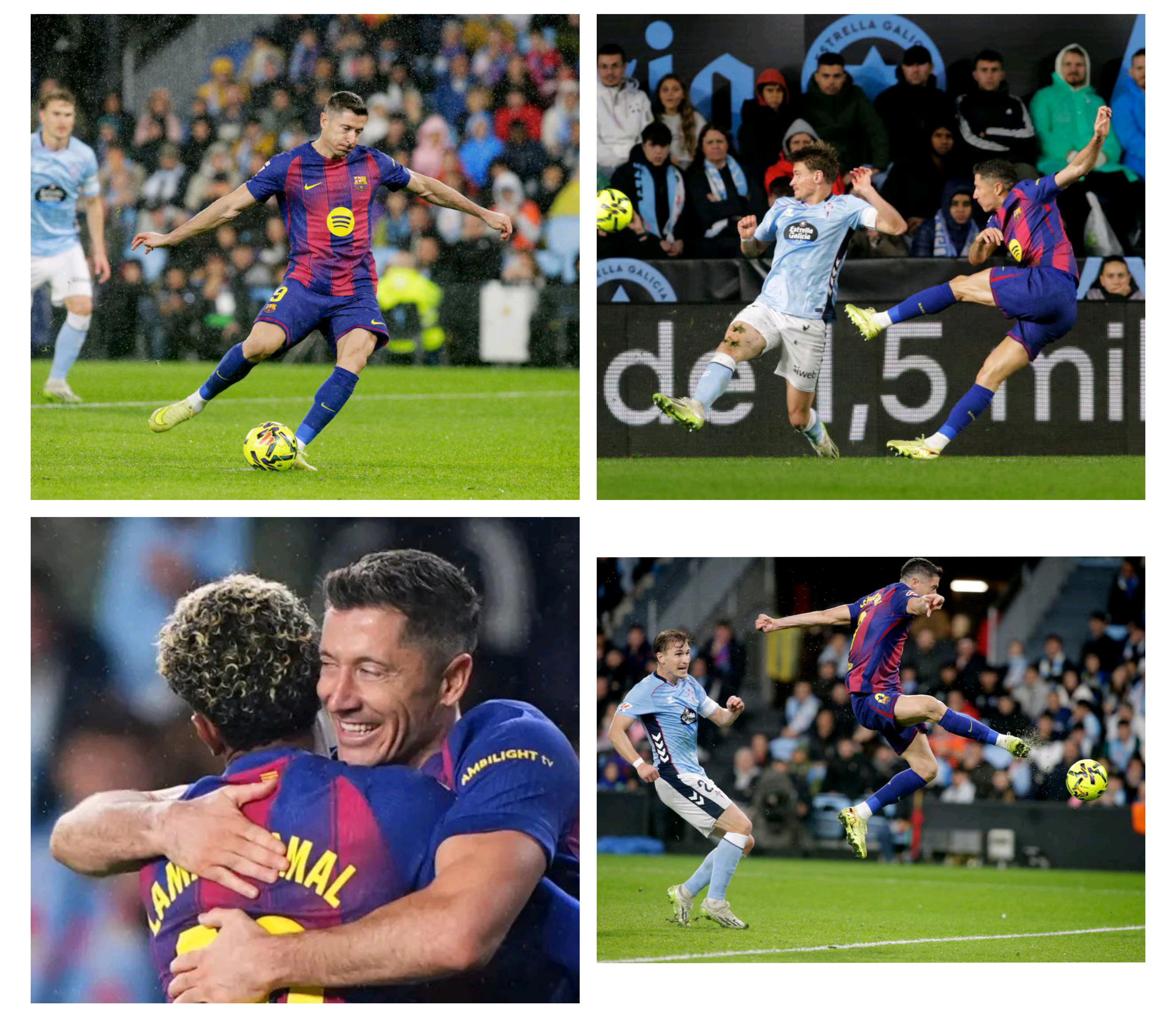 Robert Lewandowski បានស៊ុតបញ្ចូលទីបានបីគ្រាប់ (hat-trick) ហើយ Lamine Yamal ក៏រកបានមួយគ្រាប់ផងដែរ នៅពេល Barcelona បានទទួលជ័យជម្នះ 4-2 នៅលើទឹកដី Celta Vigo កាលពីថ្ងៃអាទិត្យ ហើយតាមពីក្រោយត្រឹមបីពិន្ទុពីក្រុមកំពូលតារាង Real Madrid ។