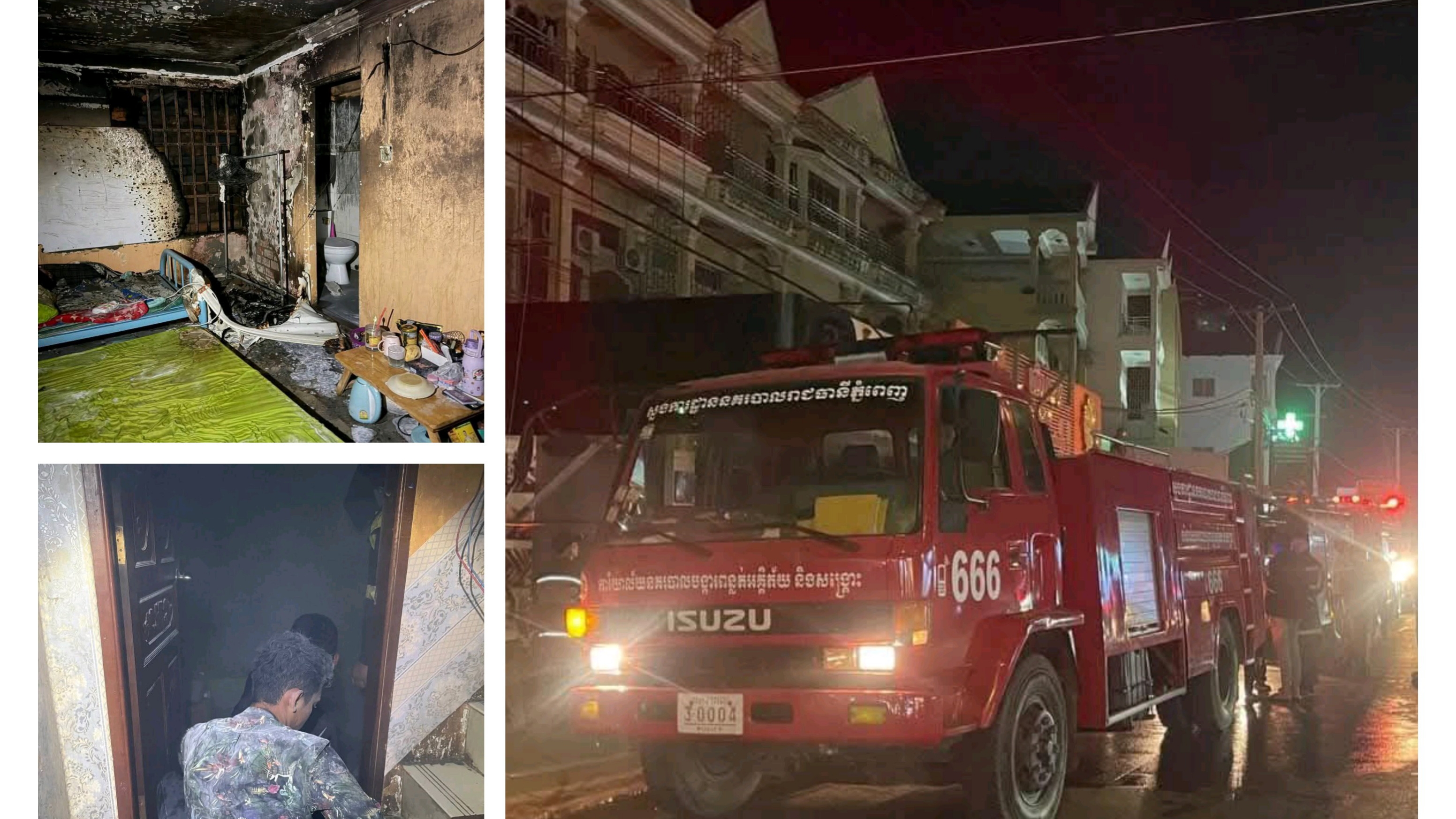 ទុស្សេខ្សែសាកទូរស័ព្ទ ឆ្លងចរន្តអគ្គិសនីបង្កជាអគ្គិភ័យបណ្តាលឱ្យឆេះខូចខាតបន្ទប់ស្នាក់នៅ