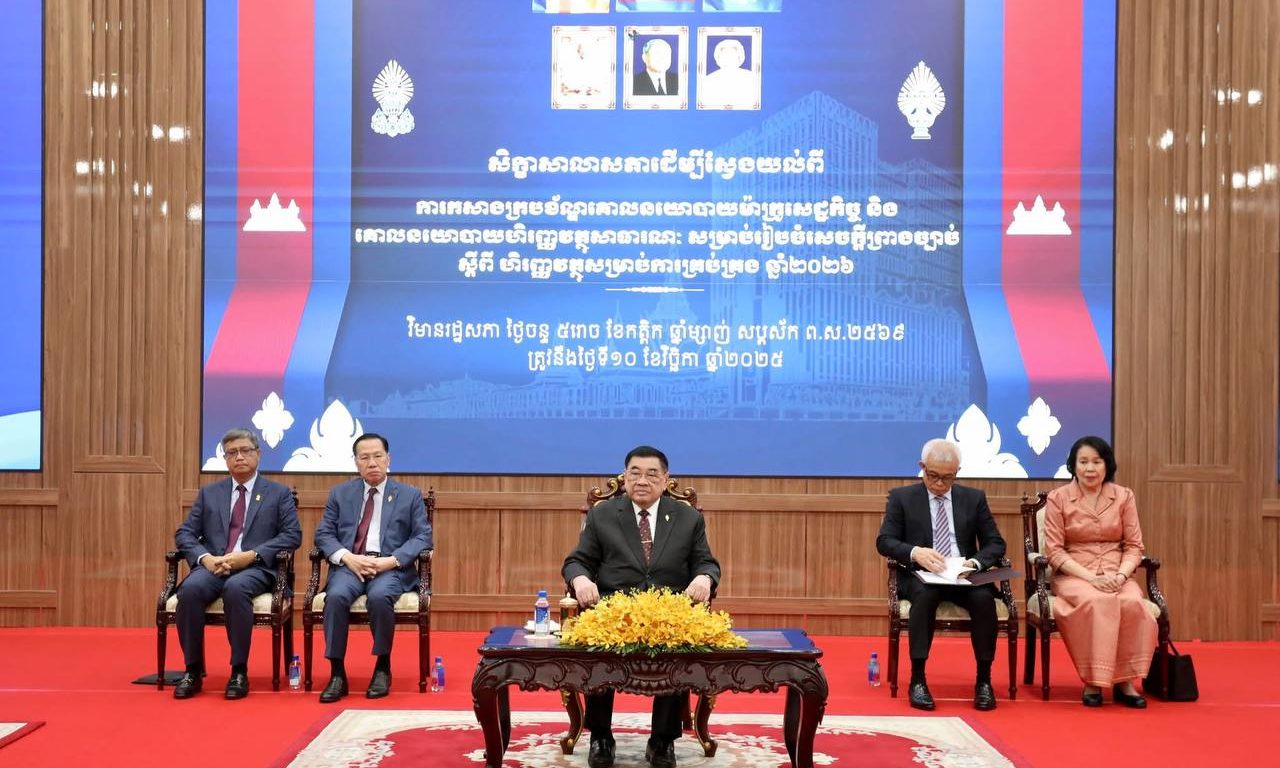 ភ្នំពេញ ៖ រដ្ឋសភានៃព្រះរាជាណាចក្រកម្ពុជាសហការជាមួយក្រសួងសេដ្ឋកិច្ច និងហិរញ្ញវត្ថុ បានរៀបចំសិក្ខាសាលាស្តីពី“ការកសាងក្របខ័ណ្ឌគោលនយោបាយម៉ាក្រូសេដ្ឋកិច្ច និងគោលនយោបាយហិរញ្ញវត្ថុសាធារណៈ ក្នុងការរៀបចំសេចក្តីព្រាងច្បាប់ស្តីពីហិរញ្ញវត្ថុសម្រាប់ការគ្រប់គ្រងឆ្នាំ២០២៦”។