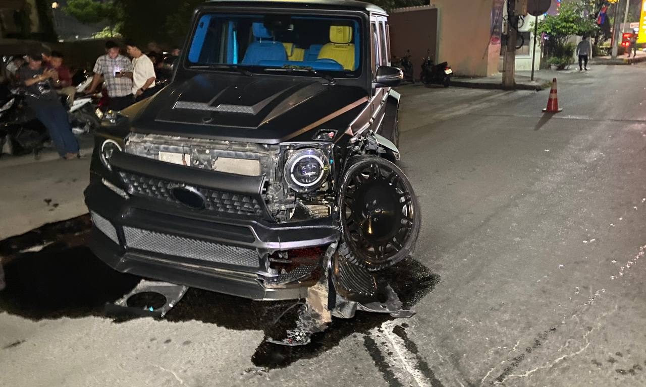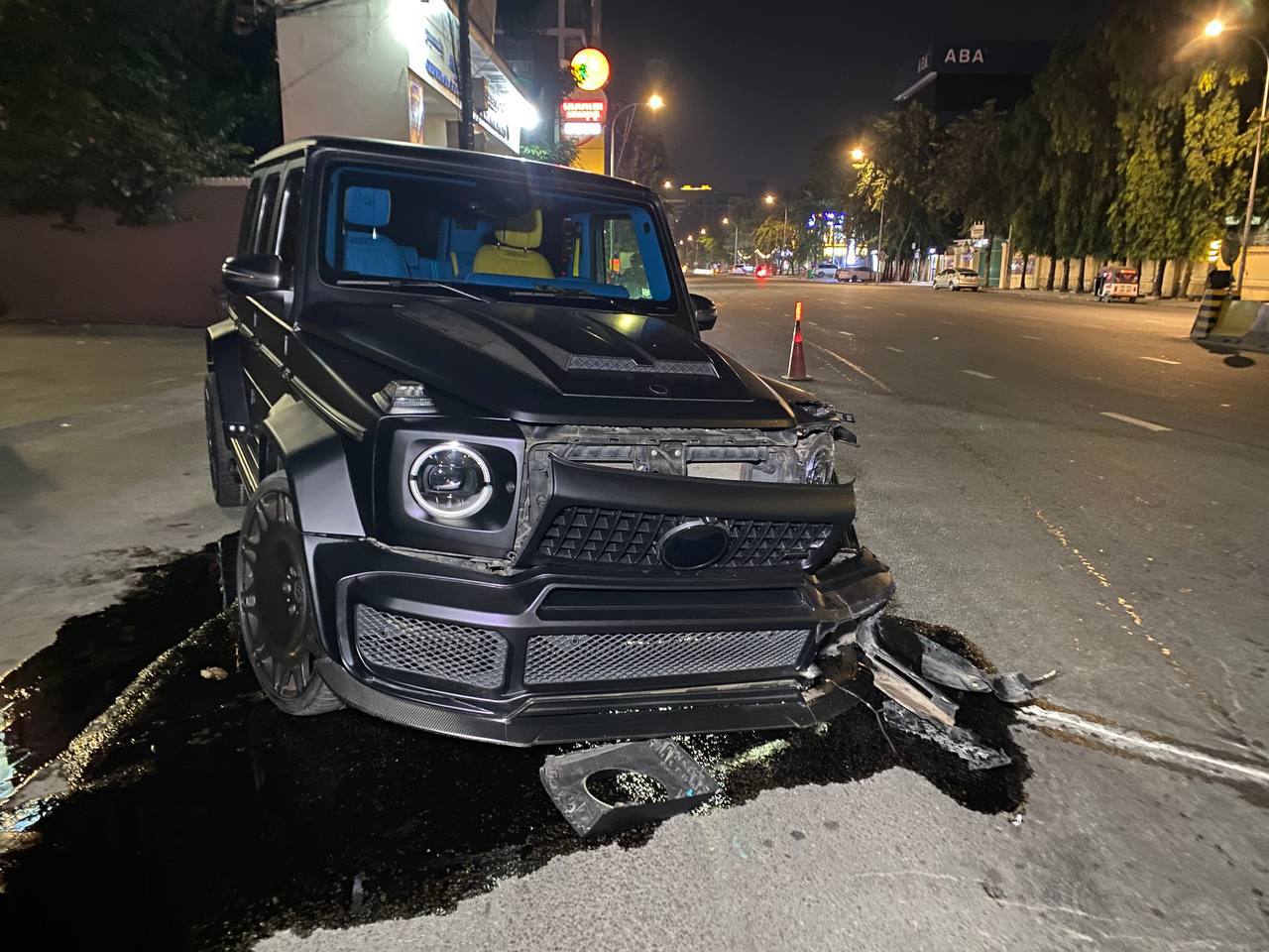 រថយន្តទំនើបម៉ាក BRABUS មួយគ្រឿងបេីកលឿនមិនប្រយ័ត្នជ្រុលទៅបុករបាំងថ្មគល់ស្ពានអាកាសក្បាលថ្នល់បណ្តាលឲ្យរថយន្តខូចខាតមួយកំណាត់មុខ