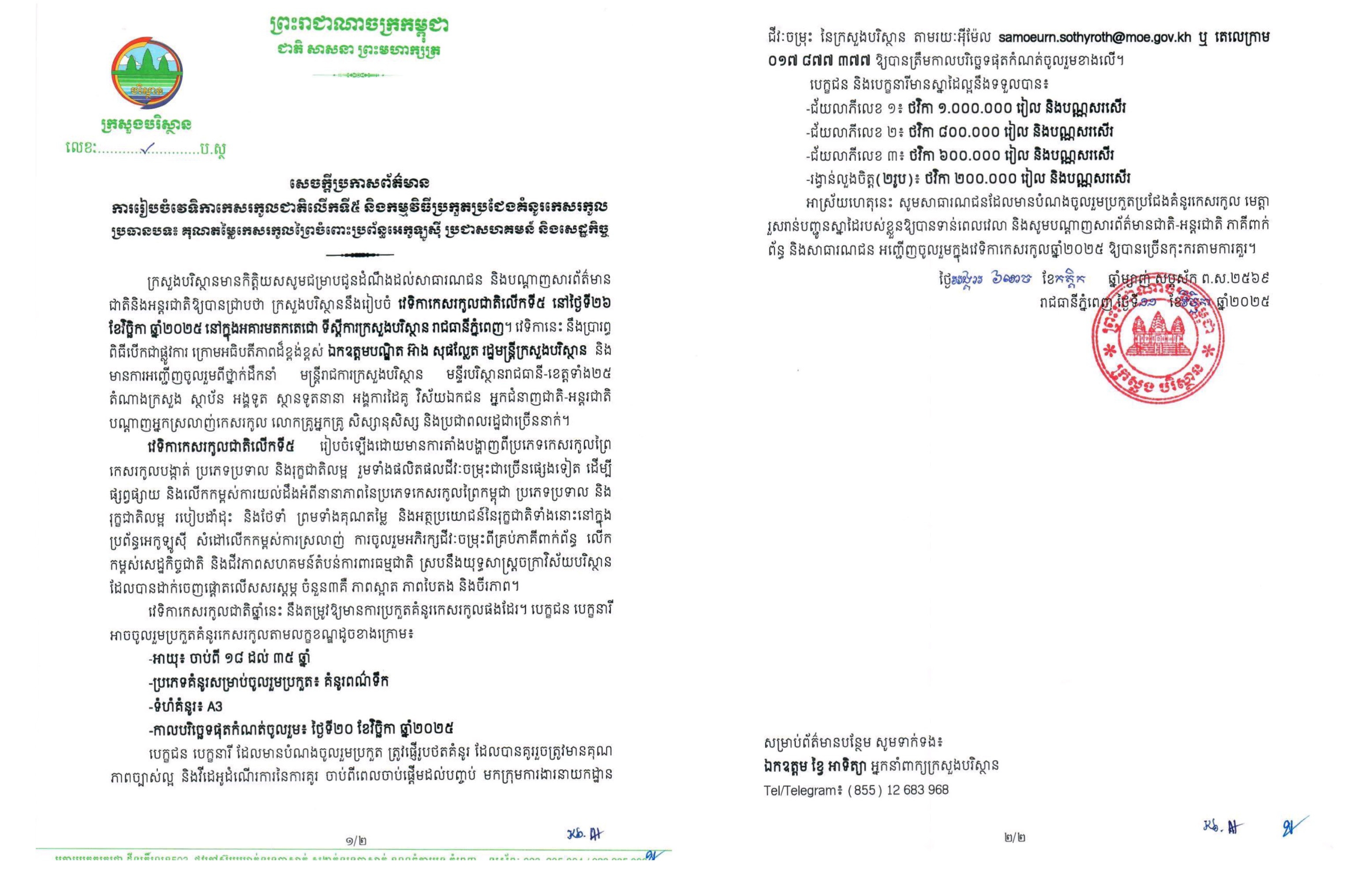 -កាលបរិច្ឆេទផុតកំណត់ចូលរួម៖ ថ្ងៃទី២០ ខែវិច្ឆិកា ឆ្នាំ២០២៥