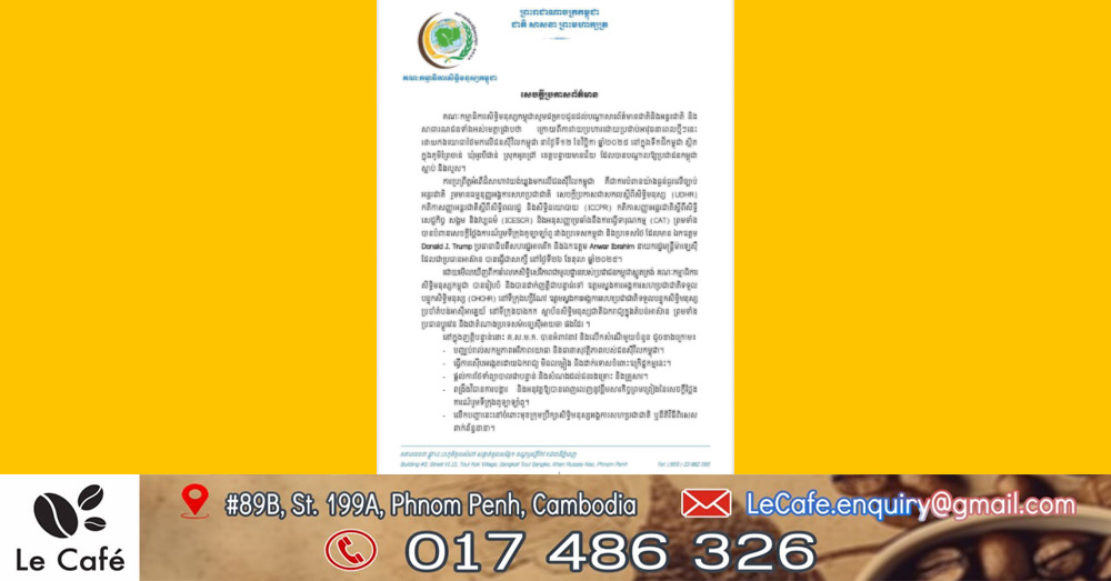 ភ្នំពេញ ៖ លោក កែវ រ៉េមី ទេសរដ្ឋមន្ត្រី ប្រធានគណៈកម្មាធិការសិទ្ធិមនុស្សកម្ពុជា (គ.ស.ម.ក.) នៅយប់ថ្ងៃទី១២ ខែវិច្ឆកានេះ បានលើកឡើងថា ៖ ដោយមើលឃើញពីការរំលោភសិទ្ធិសេរីភាពជាមូលដ្ឋានរបស់ប្រជាជនកម្ពុជាស្លូតត្រង់ គណៈកម្មាធិការសិទ្ធិមនុស្សកម្ពុជា បានរៀបចំ និងបានដាក់ញត្តិជាបន្ទាន់ទៅ ឧត្តមស្នងការអង្គការសហប្រជាជាតិទទួលបន្ទុកសិទ្ធិមនុស្ស (OHCHR) នៅទីក្រុងហ្សឺណែវ ឧត្តមស្នងការអង្គការសហប្រជាជាតិទទួលបន្ទុកសិទ្ធិមនុស្សប្រចាំតំបន់អាស៊ីអាគ្នេយ៍ នៅទីក្រុងបាងកក ស្ថាប័នសិទ្ធិមនុស្សជាតិឯករាជ្យក្នុងតំបន់អាស៊ាន ព្រមទាំងប្រធានប្តូរវេន និងជាតំណាងប្រទេសម៉ាឡេស៊ីអាយឆា ផងដែរ ។