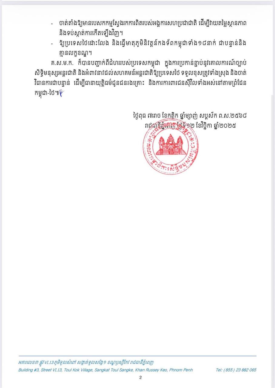 ៧/ ប្រទេសថៃត្រូវដោះលែង និងធ្វើមាតុភូមិនិវត្តន៍កងទ័ពកម្ពុជាទាំង១៨នាក់ ជាបន្ទាន់និងដោយគ្មានលក្ខខណ្ឌ៕