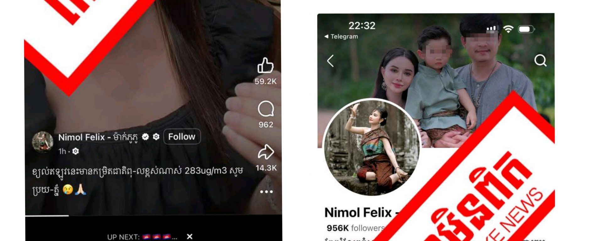 ជាមួយគ្នានេះ ក្រសួងបរិស្ថាន ស្នើឱ្យម្ចាស់ផេក Nimol Felix និងអ្នកផ្សព្វផ្សាយបន្ត ធ្វើការលប់ព័ត៌មានមិនពិតនេះចេញ និងបញ្ឈប់ការផ្សាព្វផ្សាយព័ត៌មាន ដែលជំរុញឱ្យសាធារណជន មានការភាន់ច្រឡំ លើគុណភាពខ្យល់នៅកម្ពុជានាពេលបច្ចុប្បន្ន៕ដោយ៖តារា