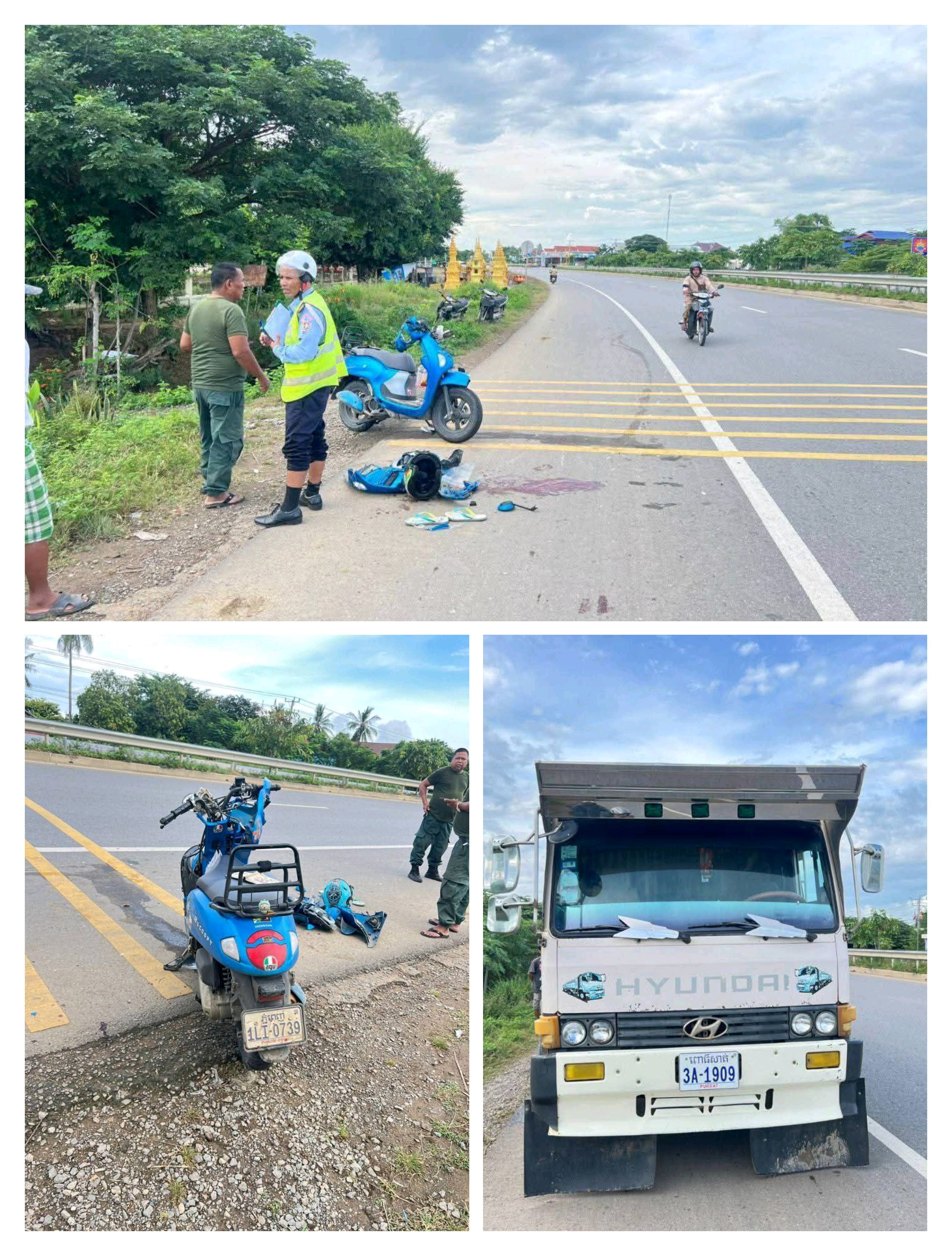 លោកអធិការបានឲ្យដឹងយ៉ាងដូច្នេះថា នៅថ្ងៃទី១៣ ខែវិច្ឆិកា ឆ្នាំ២០២៥ វេលាម៉ោង១៤និង៣០នាទី នៅលើផ្លូវជាតិលេខ៥ ចន្លោះ ២៧៤-២៧៣ចំណុចក្រុមទី៩ ភូមិបញ្ញា ឃុំកំពង់ព្រះ ស្រុកសង្កែ ខេត្តបាត់ដំបង មានករណីគ្រោះថ្នាក់ចរាចរណ៍កើតឡើងម៉ូតូបុកចំពីក្រោយរថយន្តបែនធន់ធ្ងន់បណ្តាលឲ្យមនុស្សម្នាក់ស្លាប់ ។