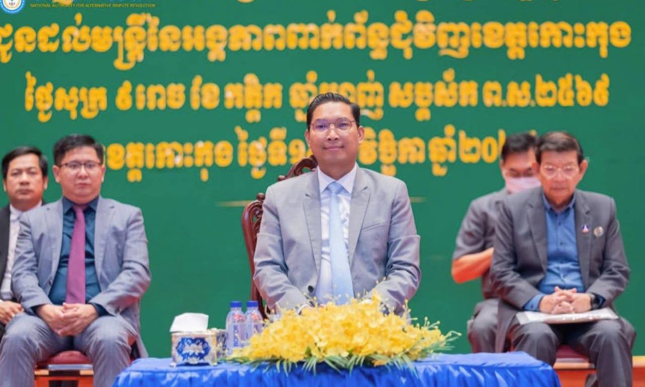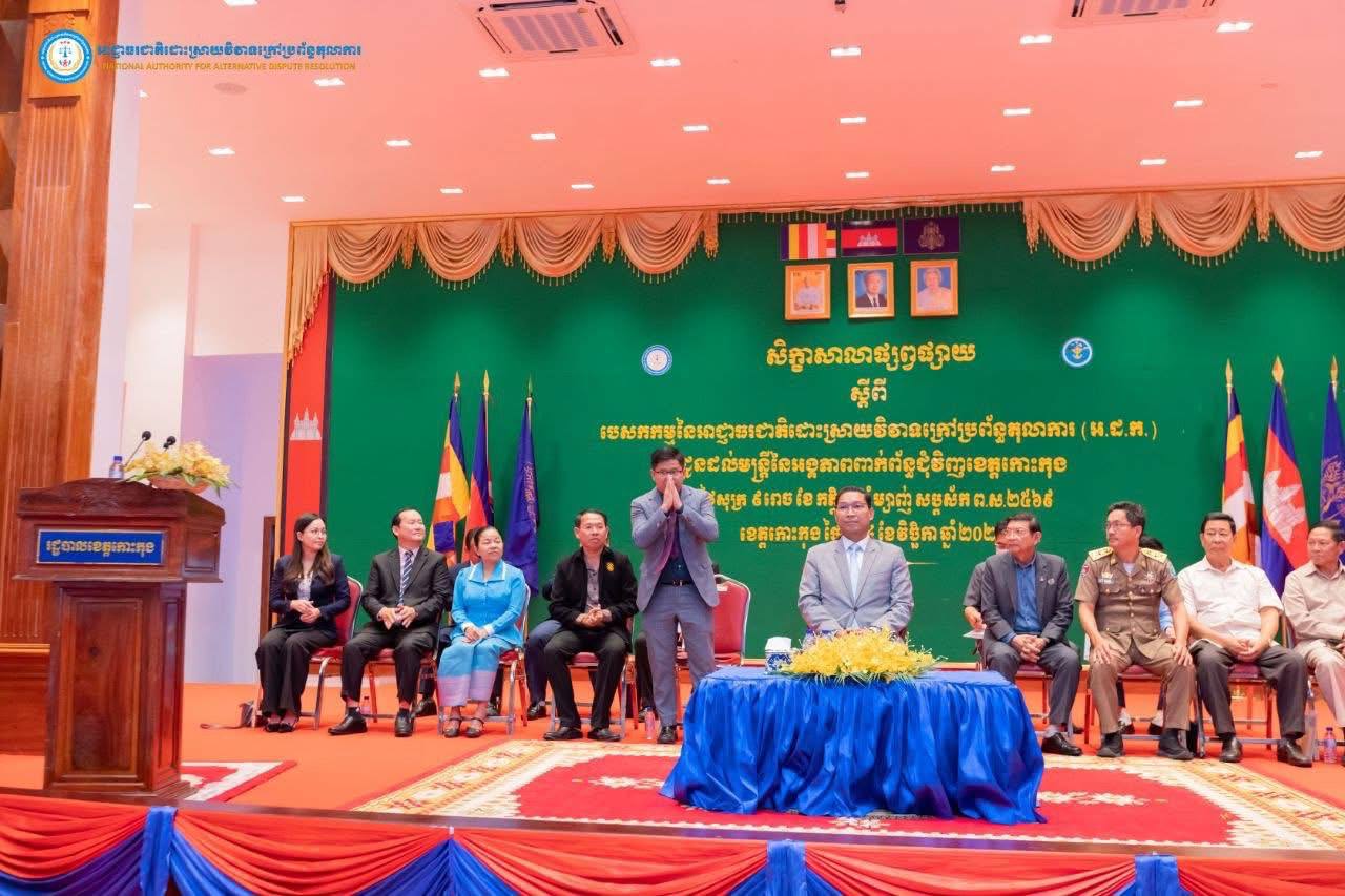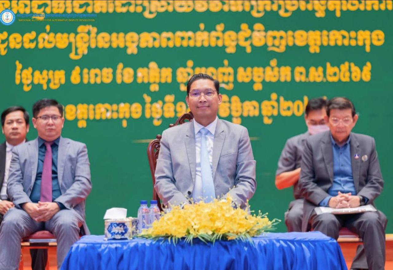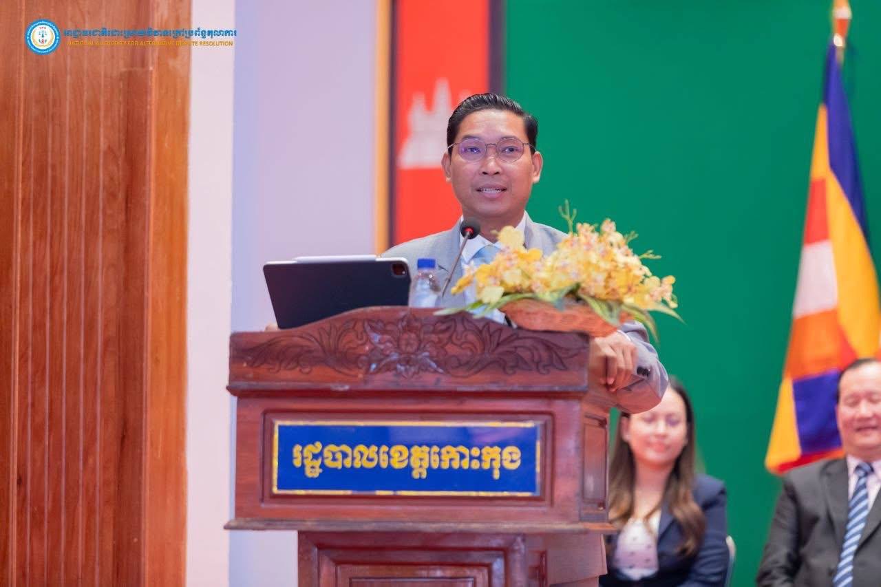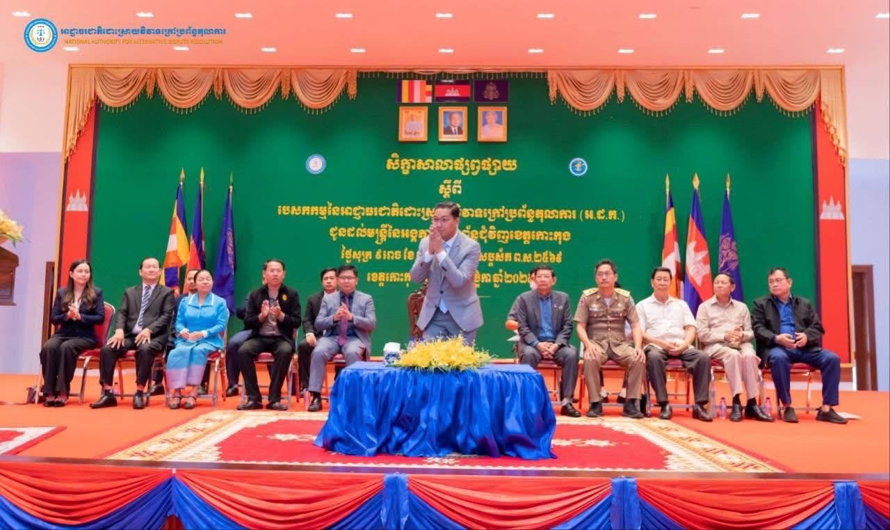 ខេត្តកោះកុង៖ លោក ឯម ច័ន្ទមករា រដ្ឋលេខាធិការក្រសួងយុត្តិធម៌ និងជាសមាជិកនៃ អ.ដ.ក. តំណាងដ៏ខ្ពង់ខ្ពស់ លោក កើត រិទ្ធ ឧបនាយករដ្ឋមន្ត្រី រដ្ឋមន្ត្រីក្រសួងយុត្តិធម៌ និងជាប្រធាន អ.ដ.ក. នារសៀលថ្ងៃទី១៤ ខែវិច្ឆិកា ឆ្នាំ២០២៥ បានអញ្ជើញជាអធិបតីក្នុងសិក្ខាសាលាផ្សព្វផ្សាយអំពីបេសកកម្មនៃអាជ្ញាធរជាតិដោះស្រាយវិវាទក្រៅប្រព័ន្ធតុលាការ ជូនដល់មន្ត្រីនៃមន្ទីរ-អង្គភាពពាក់ព័ន្ធជុំវិញខេត្តកោះកុង។