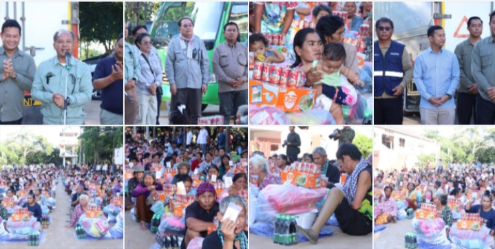 ខេត្ត​បន្ទាយមានជ័យ៖ លោក អ៊ុំ រាត្រី អភិបាល នៃគណៈអភិបាលខេត្តបន្ទាយមានជ័យ ប្រគល់អំណោយដ៏ថ្លៃថ្លារបស់សម្ដេចតេជោហ៊ុន សែន និងសម្ដេចកិត្តិព្រឹទ្ធបណ្ឌិតប៊ុន រ៉ានី ហ៊ុនសែន និងសម្ដេចមហាបវរធិបតី ហ៊ុន ម៉ាណែត និងលោកស្រីបណ្ឌិត ពេជ ចន្ទមុន្នី ហ៊ុន ម៉ាណែត តាមរយៈលោក ជិន ប៊ុនធឿន អភិបាលខណ្ឌឬស្សីកែវ រាជធានីភ្នំពេញ ប្រគល់ជូនដល់បងប្អូនជនភៀសសឹក ចំនួន៤៩៦គ្រួសារ ដែលកំពុងស្នាក់នៅបណ្ដោះអាសន្ននៅទីសុវត្ថិភាព នៅល្ងាចថ្ងៃទី១៤ ខែវិច្ឆិកា ឆ្នាំ២០២៥ នៅវត្តចានស៊ី ស្ថិតក្នុងស្រុកអូរជ្រៅ ខេត្តបន្ទាយមានជ័យ។