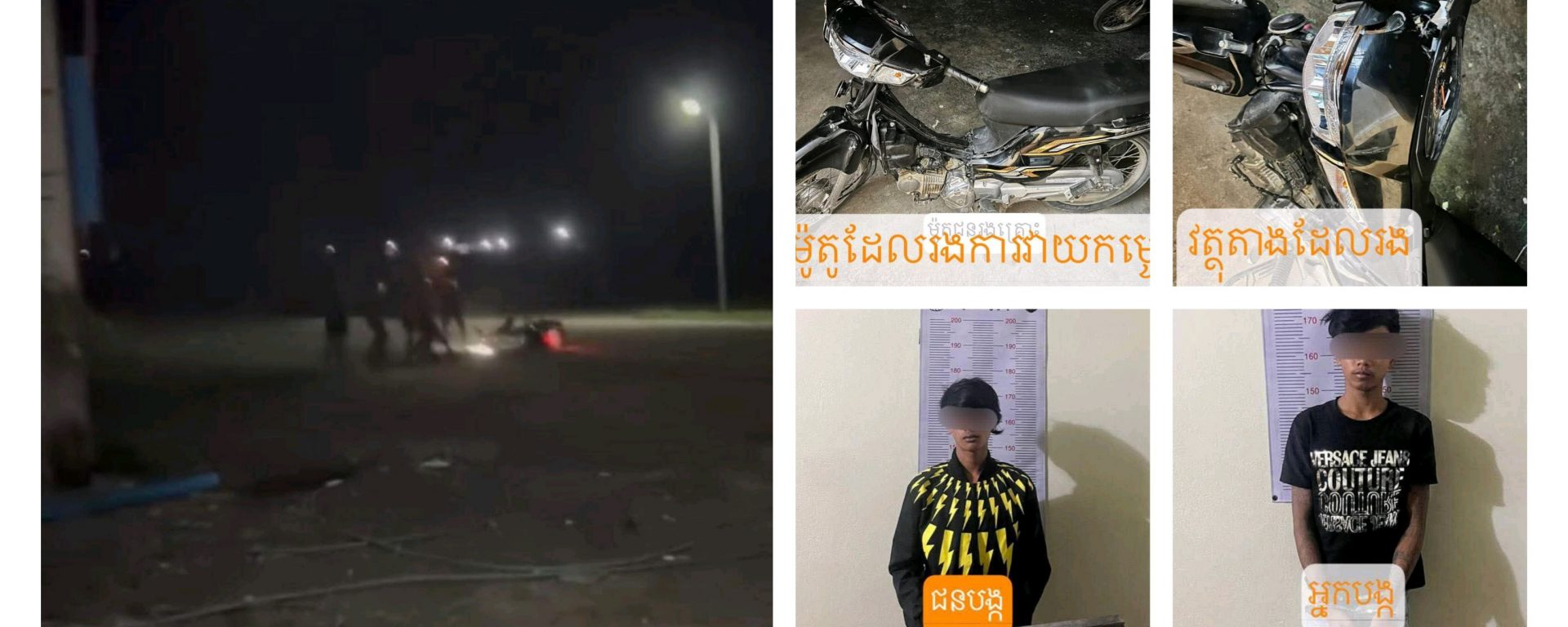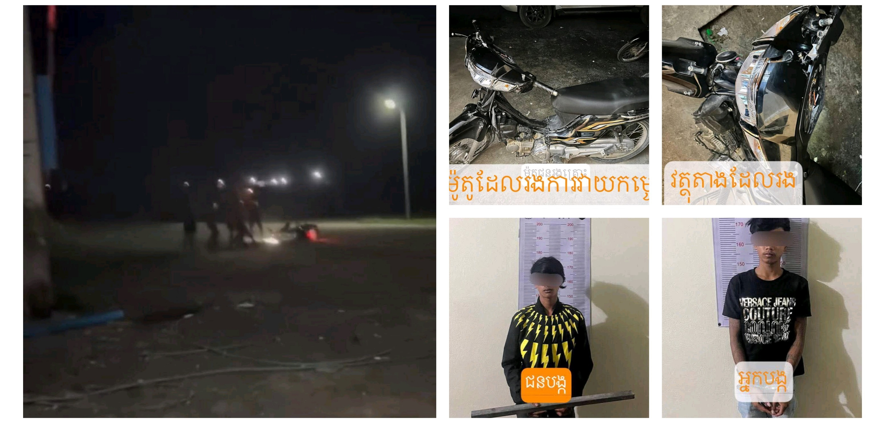 ភ្លាមៗមានប្រជាពលរដ្ឋរាយការណ៍មកប៉ុស្តិ៍ទួលអំពិល បានចុះដល់កន្លែងកើតហេតុនិងបានកិច្ចសហការស្រាវ ជ្រាវកំណត់អត្តសញ្ញាណក្រុមក្មេងទំនើងឈានដល់ធ្វើការឃាត់ខ្លួនបាន២នាក់ដកហូតបានវត្ថុតាងរួមមាន៖ កាំបិតផ្គាក់១ដើម ដំបងទីបដែក២ដើម និងម៉ូតូ១គ្រឿងរបស់ជនរងគ្រោះ។ ជនសង្ស័យទាំង២នាក់÷១/ឈ្មោះ ឡុង វិសាល ភេទប្រុស អាយុ១៦ឆ្នាំ និង ២./ឈ្មោះ ដុល គីមណៃ ភេទប្រុស អាយុ១៧ឆ្នាំ ស្នាក់នៅភូមិព្រៃពាយ ឃុំទួលអំពិល ស្រុកបសេដ្ឋ ។