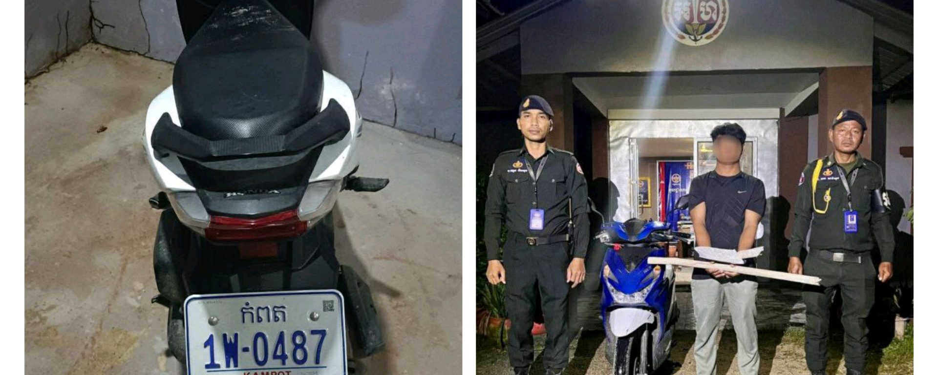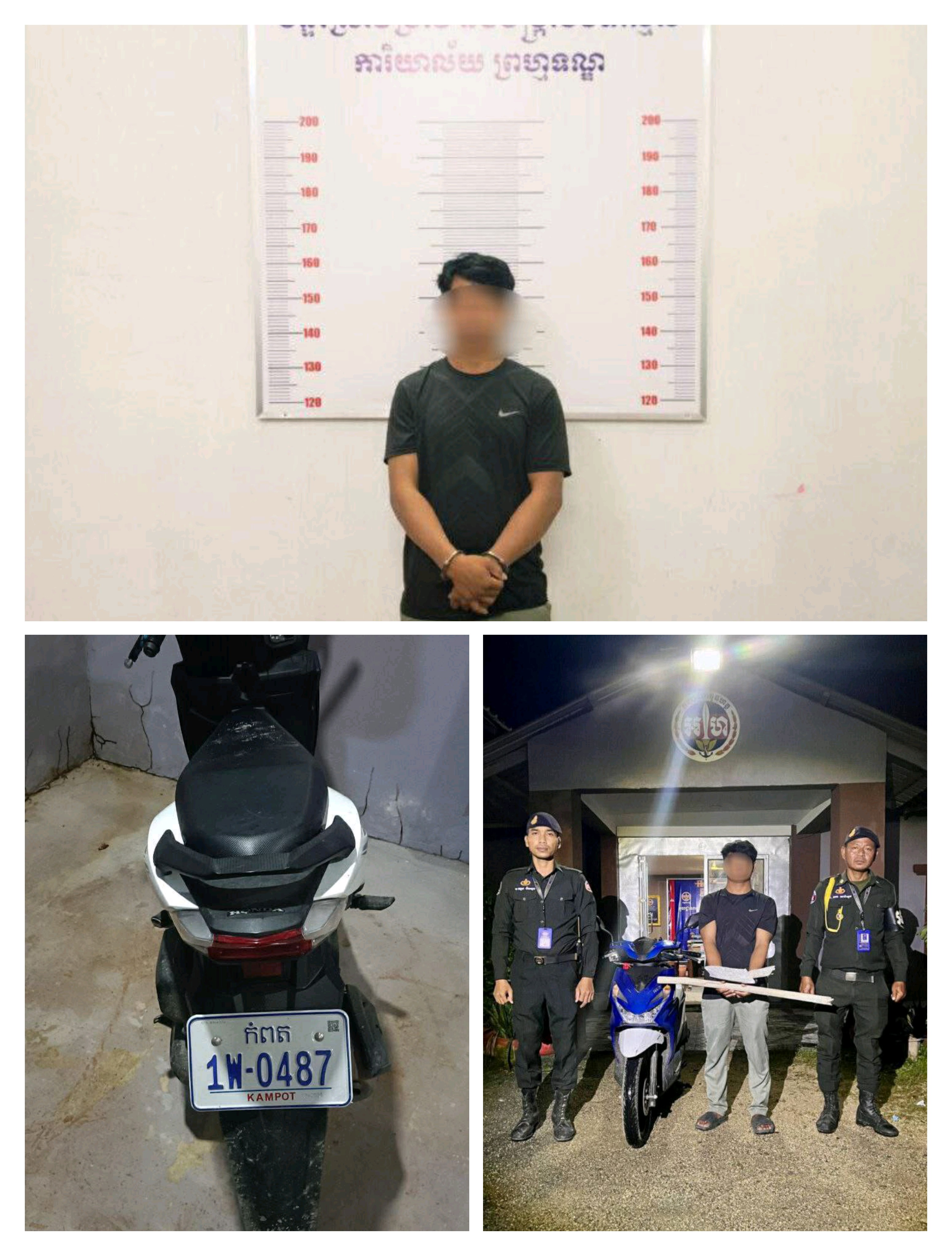 មន្ត្រីកងរាជអាវុធហត្ថស្រុកគងពិសីបានបន្តថា លុះរហូតដល់វេលាម៉ោង៦ព្រលប់ ថ្ងៃទី១៣ ខែវិច្ឆិកា ឆ្នាំ២០២៥ កម្លាំងមូលដ្ឋានកងរាជអាវុធហត្ថស្រុកគងពិសី បានចុះធ្វេីការឃាត់ខ្លួនជនសង្ស័យ ឈ្មោះ ង៉ែត ថន ភេទប្រុស អាយុ៣២ឆ្នាំ មានទីលំនៅបច្ចុប្បន្នស្នាក់នៅ ផ្ទះជួលភូមិស្រង់ ឃុំស្រង់ ស្រុកគងពិសី ខេត្តកំពង់ស្ពឺ ។ ក្រោយឃាត់ខ្លួនដកហូតវត្ថុតាង ម៉ូតូ០១គ្រឿង ម៉ាកBeat ពណ៌ខៀវ ស៊េរីឆ្នាំ២០២៥ ពាក់ស្លាក ភ្នំពេញ 1W-0487 ទូរស័ព្ទដៃ០១គ្រឿង ម៉ាកRedmi កាតបុគ្គលិកចំនួន០១ អត្តសញ្ញាណប័ណ្ណសញ្ជាតិខ្មែរ០១សន្លឹកផងដែរ ។