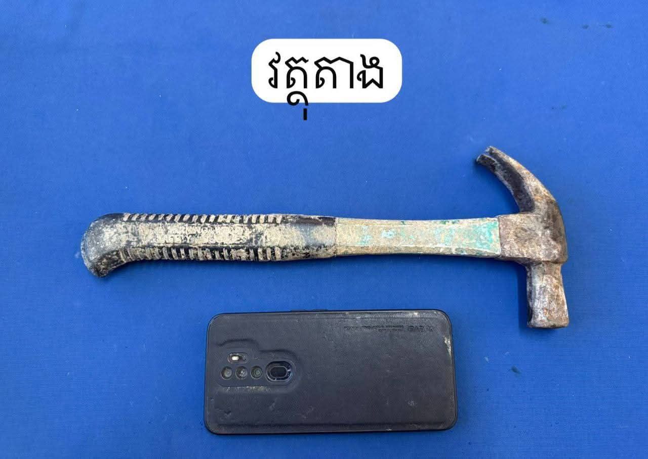 វត្ថុតាងចាប់យករួមមាន៖ ញញួរ ១ផ្លែដែកដងជ័រ ប្រវែង ៣៣cm និងទូរស័ព្ទម៉ាក OPPO A៥ ១គ្រឿង។