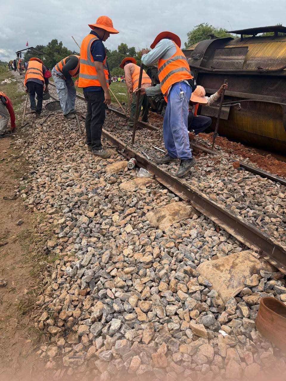 ក្រោយកេីតហេតុវិធានការណ៍បន្ទាន់ រថយន្តស្ទូចចំនួន២គ្រឿងត្រូវបានបញ្ជូនទៅកាន់កន្លែងកើតហេតុ ហើយមានចម្ងាយប្រមាណ២០គីឡូម៉ែត្រ ចំណែកក្រុមហ៊ុន រ៉ូយ៉ាល់ រ៉េល បានបញ្ជូនអ្នកគ្រប់គ្រងសុវត្ថិភាពម្នាក់ និងក្រុមជួសជុលផ្លូវដែក ទៅកន្លែងកើតហេតុ និងហៅរថយន្តបូមប្រេងពីក្រុមហ៊ុនសូគីម៉ិច បានមកដល់កន្លែងដើម្បី ប្រមូលប្រេងឥន្ធនៈដែលកំពប់៕ដោយ៖តារា