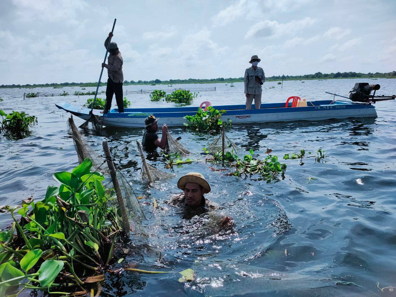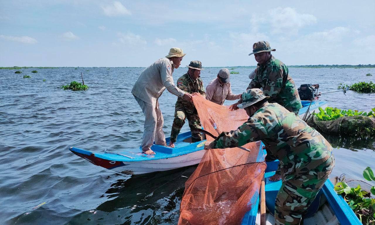 ប្រតិបត្តិការរចុះបង្ក្រាបបទល្មើសជលផលធ្វើឡើងកាលពីម្សិលមិញ នៅចំណុចក្ដាមពង ព្រែកទាល់ ស្វាខ្មៅ ក្អែកដេក ទួលវិហារ និងបឹងឆារ ស្ថិតក្នុងភូមិសាស្រ្ត ឃុំស្រឡៅ ស្រុកតាំងគោក ខេត្តកំពង់ធំ ។