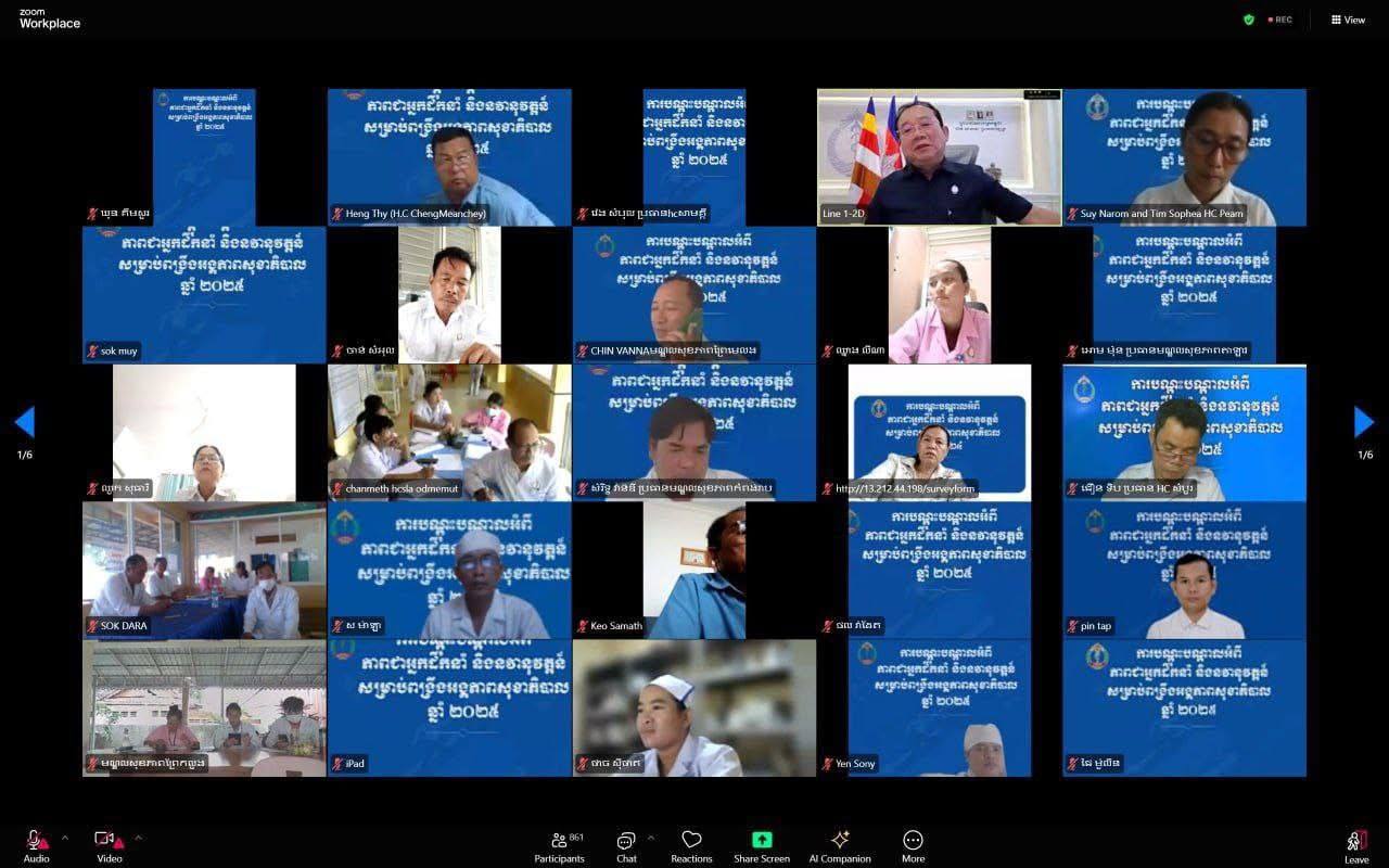 ភ្នំពេញ​៖​ លោលសាស្ត្រាចារ្យ ឈាង រ៉ា រដ្ឋមន្រ្តីក្រសួងសុខាភិបាល បានដឹកនាំវគ្គភាពអ្នកដឹកនាំ និងនវានុវត្តន៍ ដែលមានមន្រ្តីសុខាភិបាល គ្រប់ឋានានុក្រមក្រោមឱវាទក្រសួងសុខាភិបាល ចូលរួមតាមប្រព័ន្ធវីដេអូសន្និសីទ (Zoom) សរុបចំនួន ៣០៣៣នាក់កាលពីរសៀលថ្ងៃទី១៨​ ខែវិច្ឆិកា​ ឆ្នាំ​២០២៥ម្សិលមិញ​។