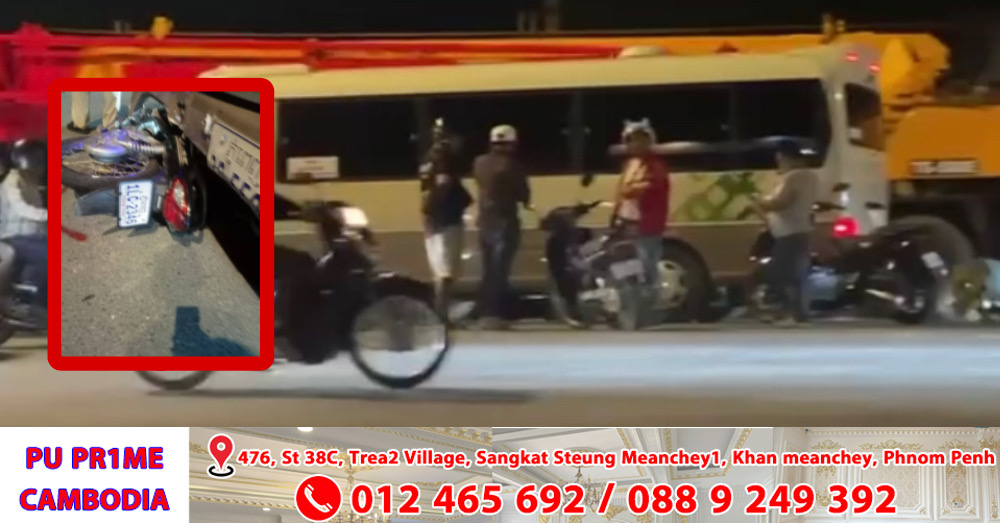 ភ្នំពេញ៖ បុរសម្នាក់ស្លៀកពាក់ឯកសណ្ឋានជាសន្តិសុខបានជិះម៉ូតូឆ្លងផ្លូវត្រូវរថយន្តដឹកអ្នកដំណេីរបុកកិនស្លាប់ភ្លាមៗ កាលពីវេលាម៉ោង៧ យប់ ថ្ងៃទី១៩ ខែ វិច្ឆិកា ឆ្នាំ២០២៥ នៅផ្លូវជាតិលេខ៣ ភូមិតាំងរនាម សង្កាត់ប្រទះឡាង ខណ្ឌកំបូល ។
