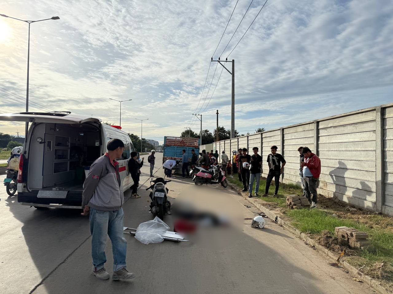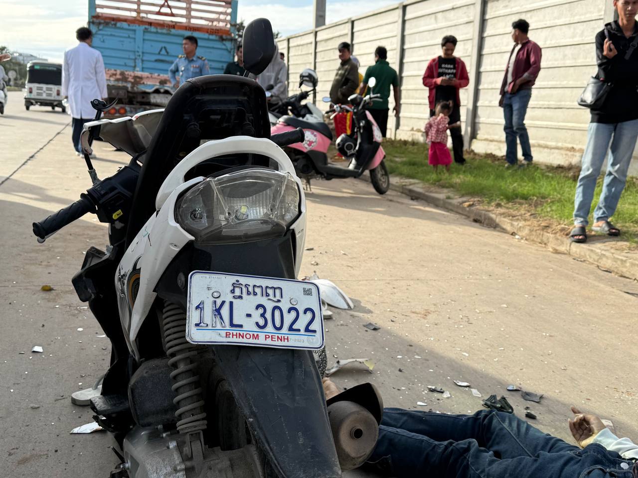 យុវជនម្នាក់ជិះម៉ូតូទៅបុករថយន្តកូរ៉េដឹកឥដ្ឋពីក្រោយ​ បណ្ដាលឱ្យស្លាប់ភ្លាមៗ