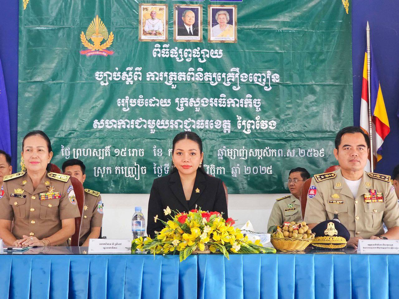 ខេត្តព្រៃវែង ៖ នាថ្ងៃទី២០ ខែវិច្ឆិកា ឆ្នាំ២០២៥ អាជ្ញាធរជាតិប្រយុទ្ធប្រឆាំងគ្រឿងញៀន ក្រសួងអធិការកិច្ច និងរដ្ឋបាលខេត្តព្រៃវែងរួមគ្នាផ្សព្វផ្សាយច្បាប់ស្តីពីការត្រួតពិនិត្យគ្រឿងញៀន និងជំរុញប្រើប្រាស់ App NoDrug ដល់មន្រ្តីរាជការ កងកម្លាំង អាជ្ញាធរមូលដ្ឋាន សិស្សានុសិស្សនៅស្រុកកញ្រ្ចៀច ខេត្តព្រៃវែង។