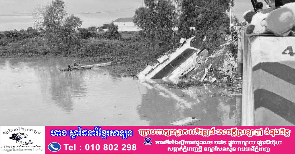 សូមជម្រាបថា ចំពោះសោកនាដកម្ម នៃគ្រោះថ្នាក់ចរាចរណ៍ដ៏រន្ធត់ ដោយរថយន្ដក្រុង ដឹកអ្នកដំណើរពេលយប់ ១គ្រឿង ផ្ទុកមនុស្ស ៣៧នាក់ បានក្រឡាប់ធ្លាក់ចូលក្នុងទឹក នៅចំណុចស្ពានអូរប្រសាទ ក្នុងភូមិជ័យជំនះ ឃុំកកោះ ស្រុកសន្ទុក ខេត្តកំពង់ធំ ដែលបណ្តាលឱ្យបងប្អូនប្រជាពលរដ្ឋយើង ស្លាប់ ១៣នាក់ និងរបួសធ្ងន់ស្រាលជាង ២០នាក់។