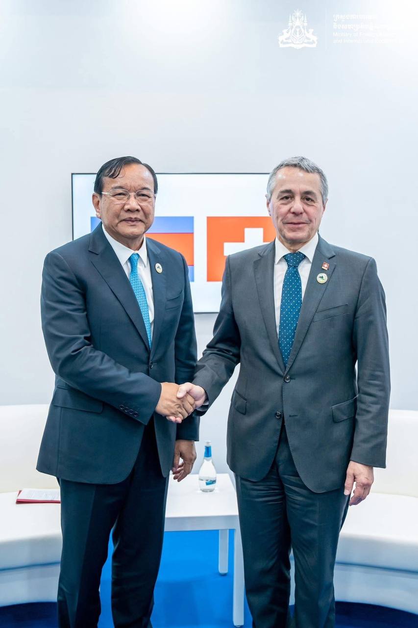 ក្នុងឱកាសនៃជំនួប រដ្ឋមន្រ្តីទាំងពីរបានវាយតំលៃខ្ពស់ពីការរីកចម្រើននៃទំនាក់ទំនងទ្វេភាគីរវាងប្រទេសទាំងពីរ និងពិភាក្សាពីកាជំរុញកិច្ចសហប្រតិបត្តិការដែលមានស្រាប់អោយកាន់តែស៊ីជម្រៅបន្ថែមទៀត។ លោកឧបនាយករដ្ឋមន្ត្រី ក៏បានថ្លែងអំណរគុណដល់ប្រទេសស្វីសដែលបានផ្តល់ជំនួយអភិវឌ្ឍន៍ដល់កម្ពុជា ជាពិសេសលើវិស័យសុខាភិបាល ការដោះមីន វប្បធម៌ និងអភិបាលកិច្ចមូលដ្ឋាន។ ភាគីស្វីសបានសំដែងការគាំទ្រចំពោះកម្ពុជាសម្រាប់ការធ្វើជាប្រទេសម្ចាស់ផ្ទះនៃកិច្ចប្រជុំកំពូលហ្វ្រង់កូហ្វូនីលើកទី២០ នៅឆ្នាំ២០២៦ និងទន្ទឹងរង់ចាំចូលរួមក្នុងព្រឹត្តការណ៍ដ៏ដ៏មានសារៈសំខាន់នេះ ៕