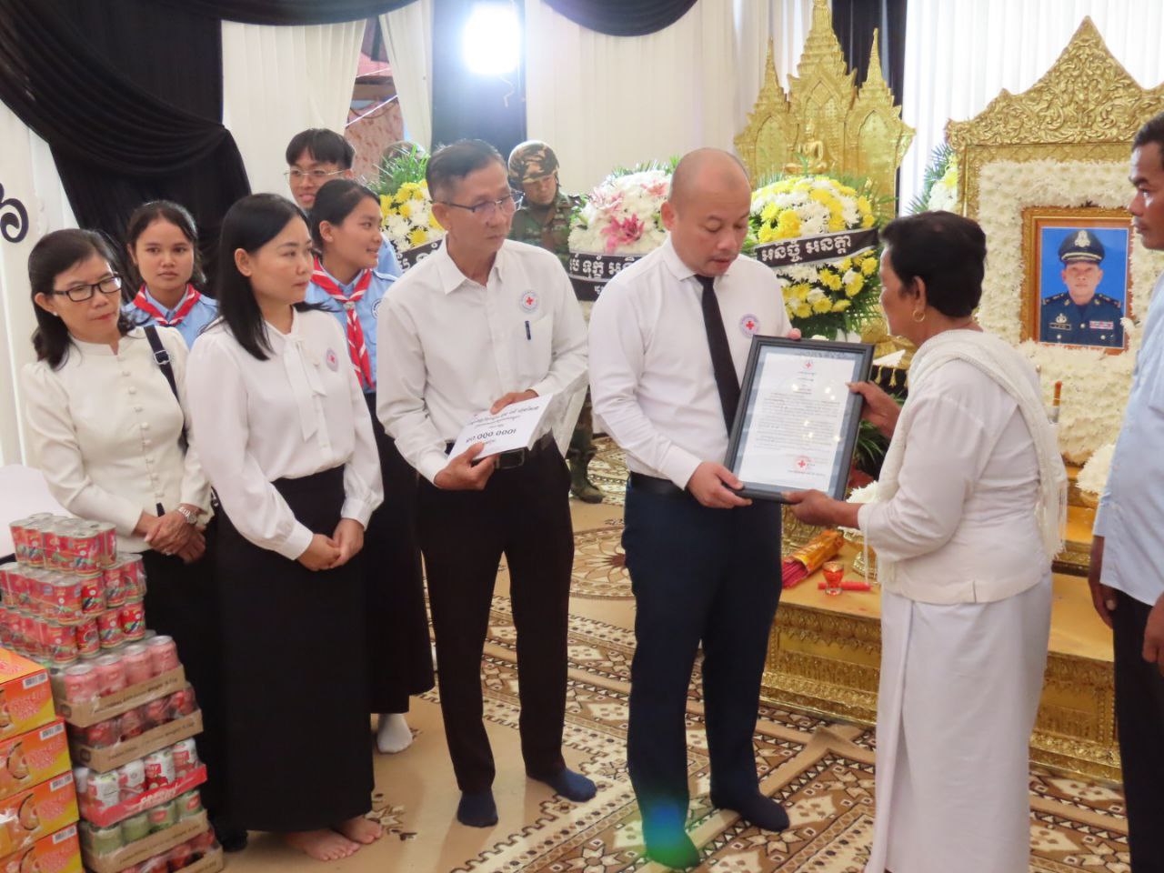 ក្នុងឱកាសដ៏ក្រៀមក្រំនោះដែរ ឯកឧត្តមប្រធានក្រុមប្រឹក្សាខេត្តបាននាំមកនូវសាររំលែកមរណៈទុក្ខព្រមទាំងបច្ច័យចូលបុណ្យចំនួន៥លានរៀល ជូនដល់ក្រុមគ្រួសារនៃសពលោកឧត្តមសេនីយ៍ត្រី ស្រី ធឿន ផងដែរ។
