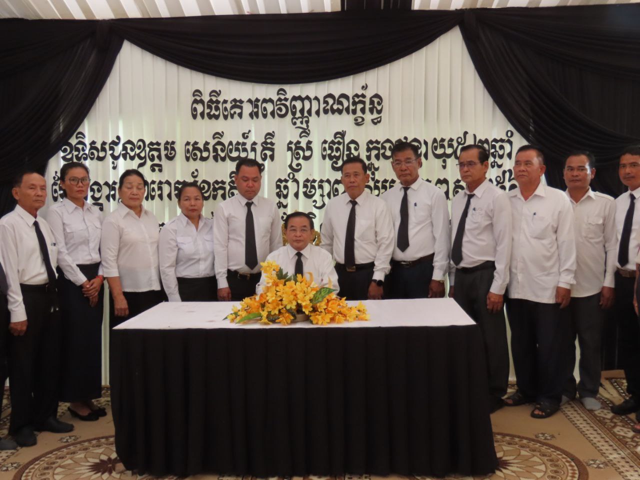 លោកប្រធានក្រុមប្រឹក្សាខេត្តព្រមទាំងប្រតិភូអមដំណេីរបានចូលរួមរំលែកទុក្ខជាមួយក្រុមគ្រួសារសព និងសូមបួងសួង ដល់តេជៈបារមីនៃព្រះពុទ្ធ ព្រះធម៌ ព្រះសង្ឃ តាមជួយថែរក្សាដួងវិញ្ញាណក្ខន្ធរបស់ លោកឧត្តមសេនីយ៍ត្រី ស្រី ធឿន បានទៅសោយសុខក្នុងឋានសុគតិភពកុំបីឃ្លៀងឃ្លាតឡើយ។