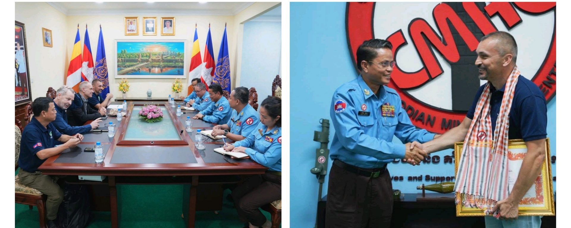 ភ្នំពេញ៖ លោក ហេង រតនា អគ្គនាយកអង្គភាពស៉ីម៉ាក់ បានទទួលជួបពិភាក្សាការងារជាមួយលោកHans Risser ប្រធានអង្គការNPA នៅកម្ពុជា និងថ្នាក់ដឹកនាំអង្គការNPA មកក្រុងអូស្លូប្រទេសណ័រវេស្ស នៅល្ងាចថ្ងៃទី២១ ខែវិច្ឆិកា ឆ្នាំ២០២៥ នៅទីបញ្ជាការដ្ឋានCMAC រាជធានីភ្នំពេញ។