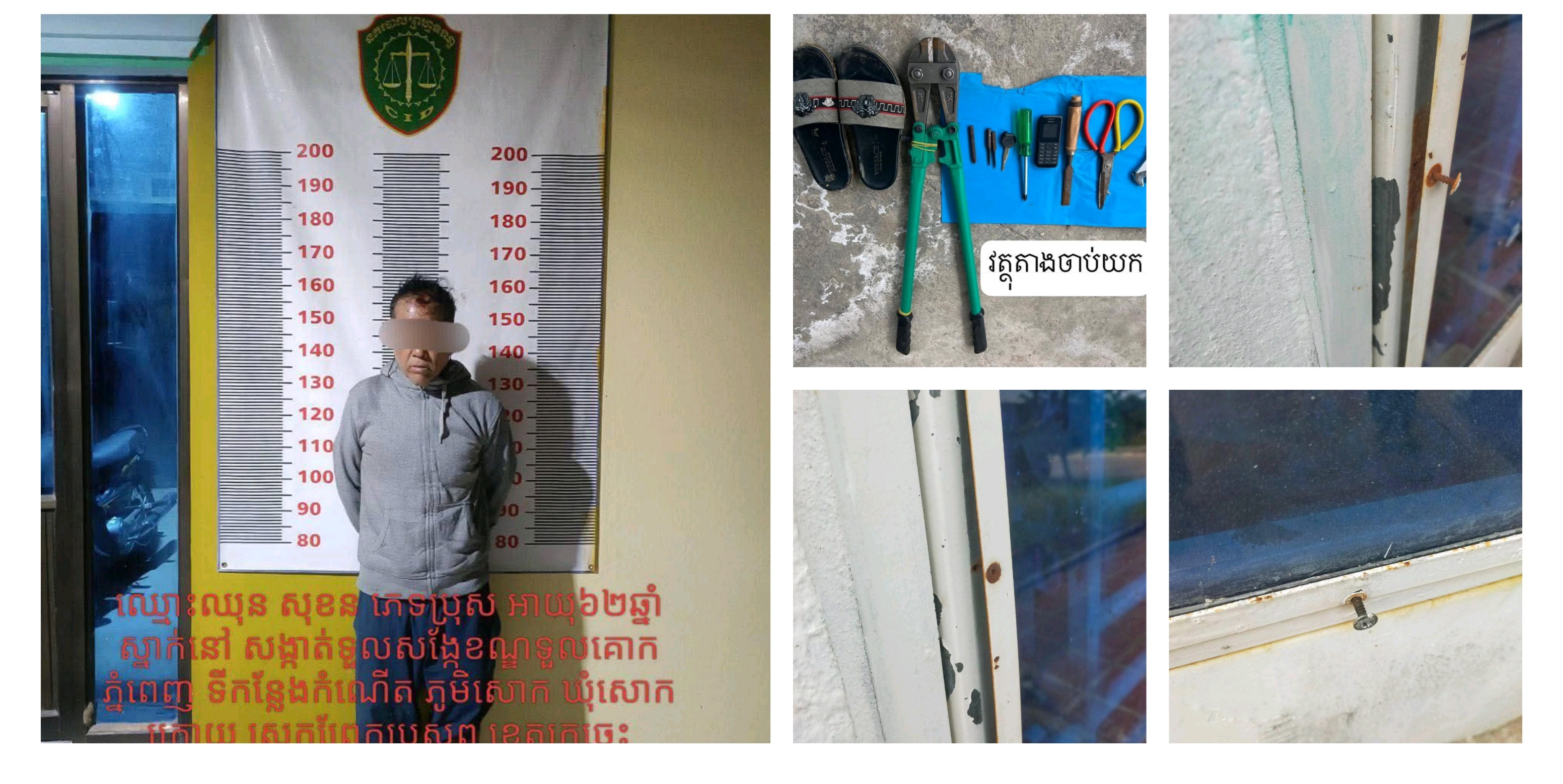 ខេត្តកំពង់ស្ពឺ ៖ នគរបាលក្រុងច្បារមនឃាត់ខ្លួនបុរសចំណាស់ម្នាក់មកពីភ្នំពេញដែលធ្វើសកម្មភាពគាស់ផ្ទះប្រជាពលរដ្ឋនៅពេលយប់។ បច្ចុប្បន្នជួនសង្ស័យត្រូវបានឃុំខ្លួនដើម្បីកសាងសំណុំរឿងចាត់ការតាមច្បាប់។
