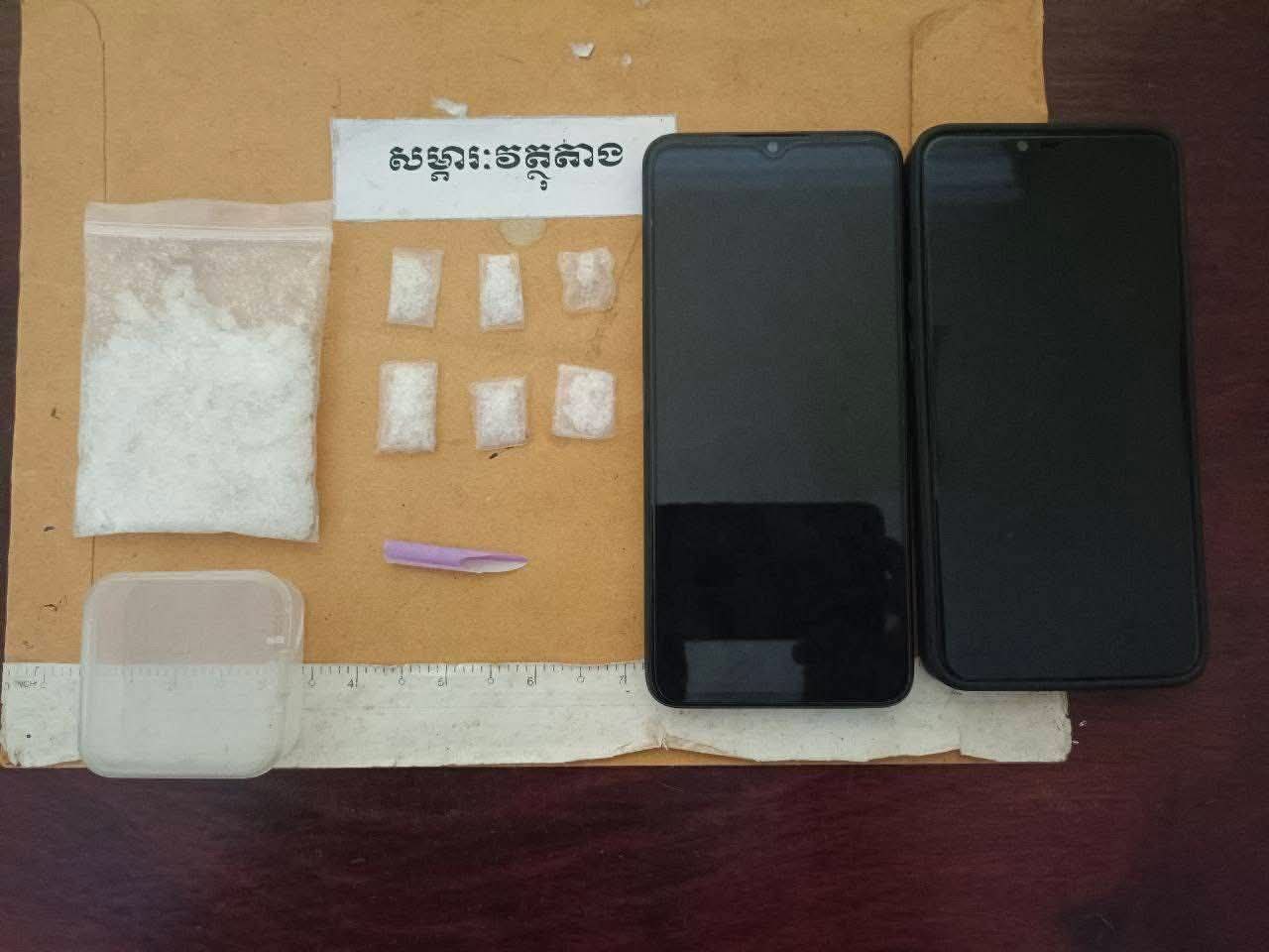 ជាក់ស្តែងកំលាំងសមត្ថកិច្ចបានឃាត់និងត្រួតពិនិត្យឆែកឆេរ ដកហូត បានម្សៅក្រាមសថ្លាសង្ស័យជា គ្រឿង ញៀនចំនួន៧កញ្ចប់,ទូរស័ព្ទដៃចំនួន២គ្រឿង, និង ឧបករណ៍ កែច្នៃសំរាប់ប្រេីប្រាស់គ្រឿងញៀនមួយចំនួន។