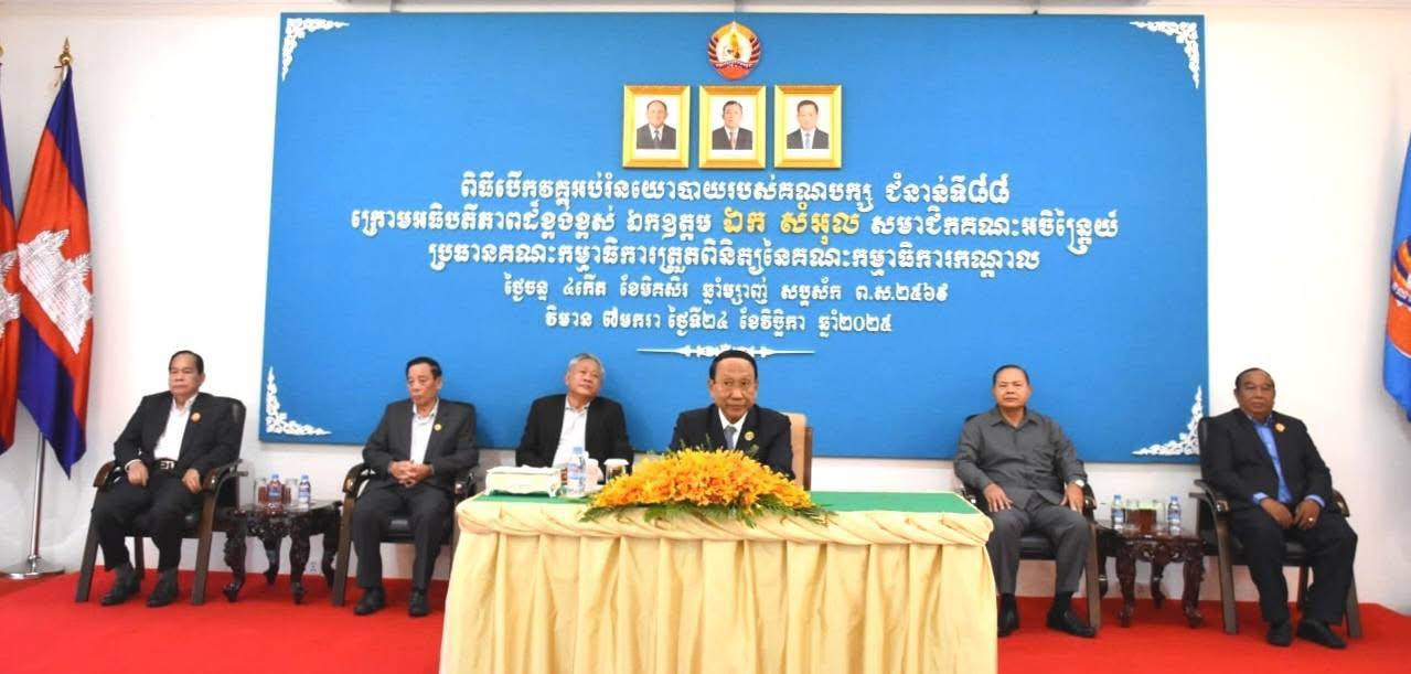 ភ្នំពេញ ៖ លោក ឯក សំអុល សមាជិកគណៈអចិន្រ្តៃយ៍ ប្រធានគណៈកម្មាធិការត្រួតពិនិត្យនៃគណៈកម្មាធិការកណ្តាលថ្ងៃច័ន្ទ ៤កើត ខែមិគសិរ ឆ្នាំម្សាញ់ សប្តស័ក ព.ស.២៥៦៨ ត្រូវនឹងថ្ងៃទី២៤ ខែវិច្ឆិកា ឆ្នាំ២០២៥ ដោយមានការអញ្ជើញចូលរួមជាភ្ញៀវកិត្តិយសពីសំណាក់លោកប្រធាន អនុប្រធាននៃបណ្តាស្ថាប័នជុំវិញគណៈកម្មាធិការកណ្តាល បានអញ្ជើញជាអធិបតីភាពខ្ពង់ខ្ពស់ក្នុងពិធីបើកវគ្គអប់រំនយោបាយរបស់គណបក្ស ជំនាន់ទី ៨៨ វិមាន ៧ មករា , រាជធានីភ្នំពេញ។