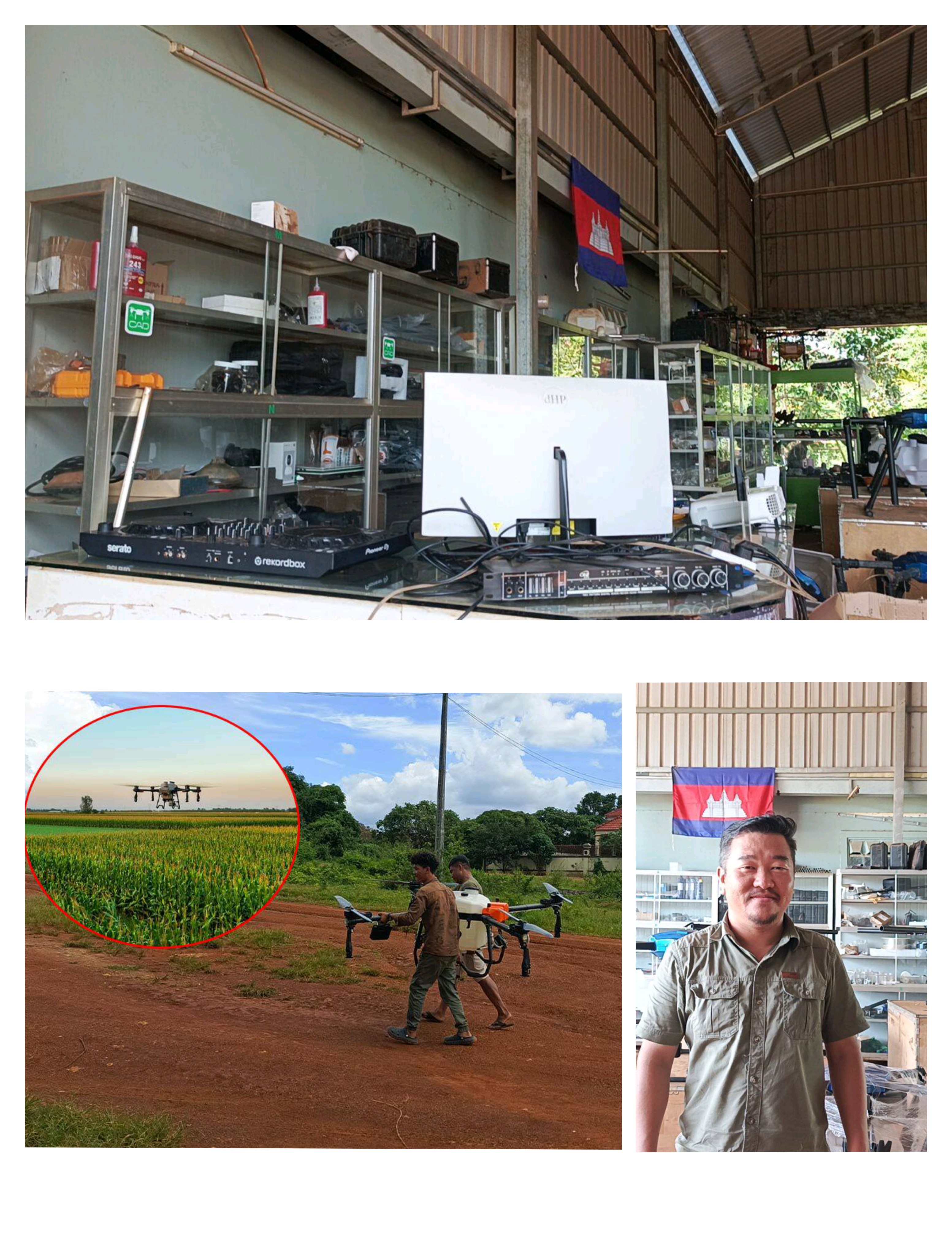 រូបថត​៖​ លោក គឹម បូរ៉ាន​ និងឃ្លាំងផ្ទុកគ្រឿងបង្គុំដ្រូន