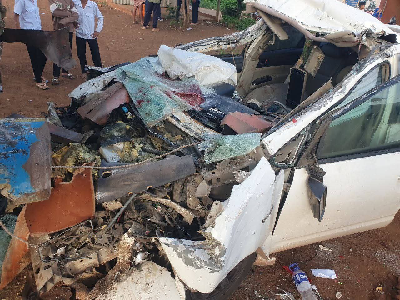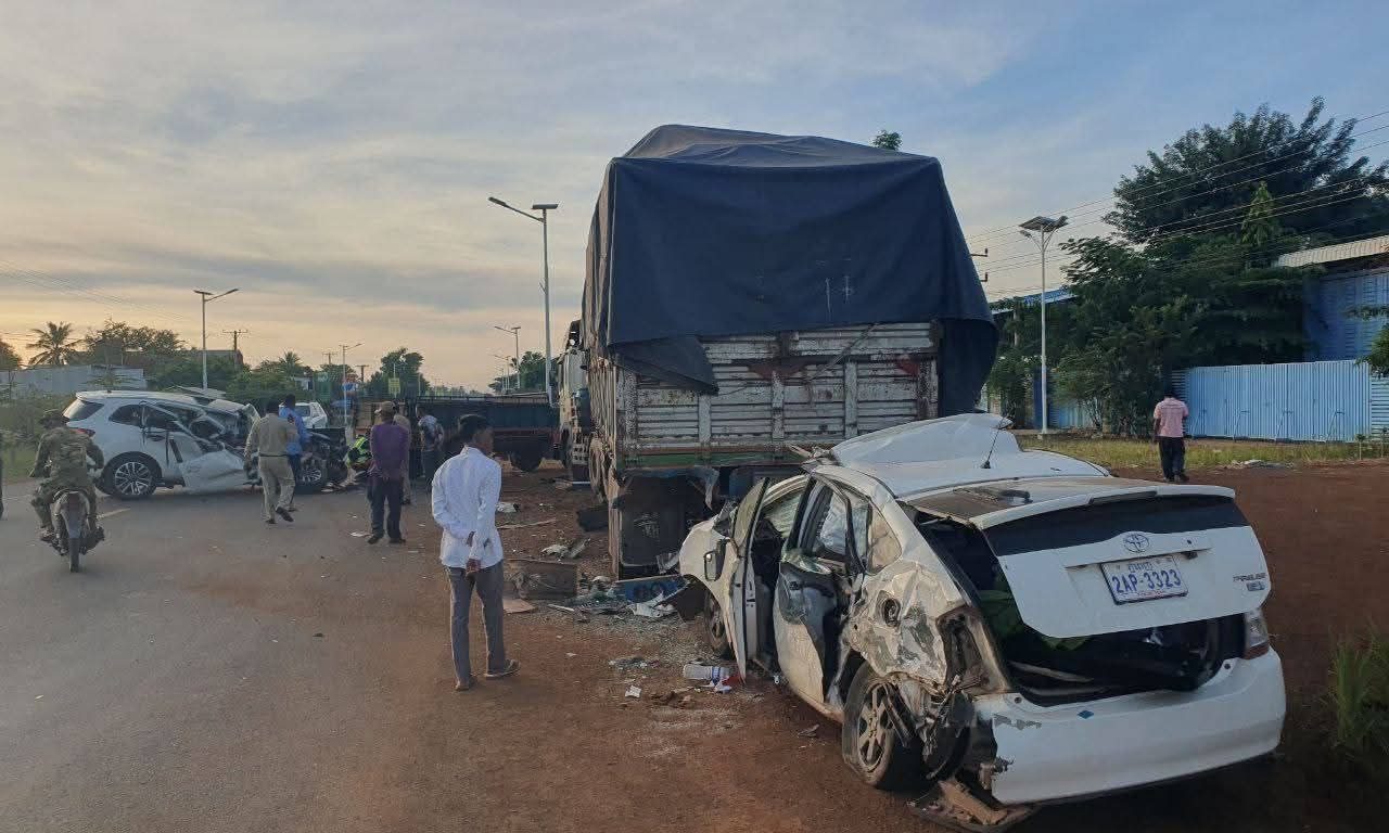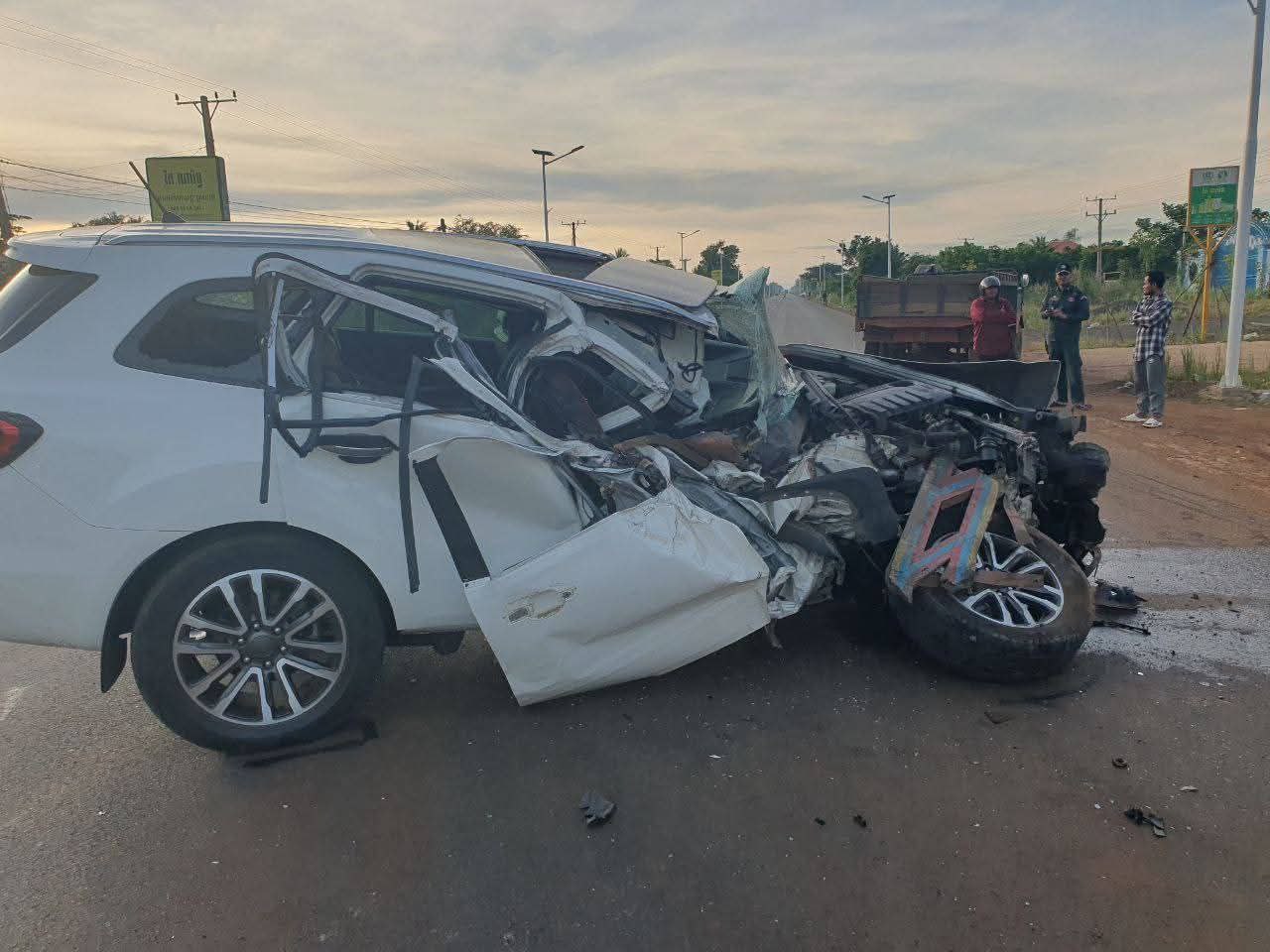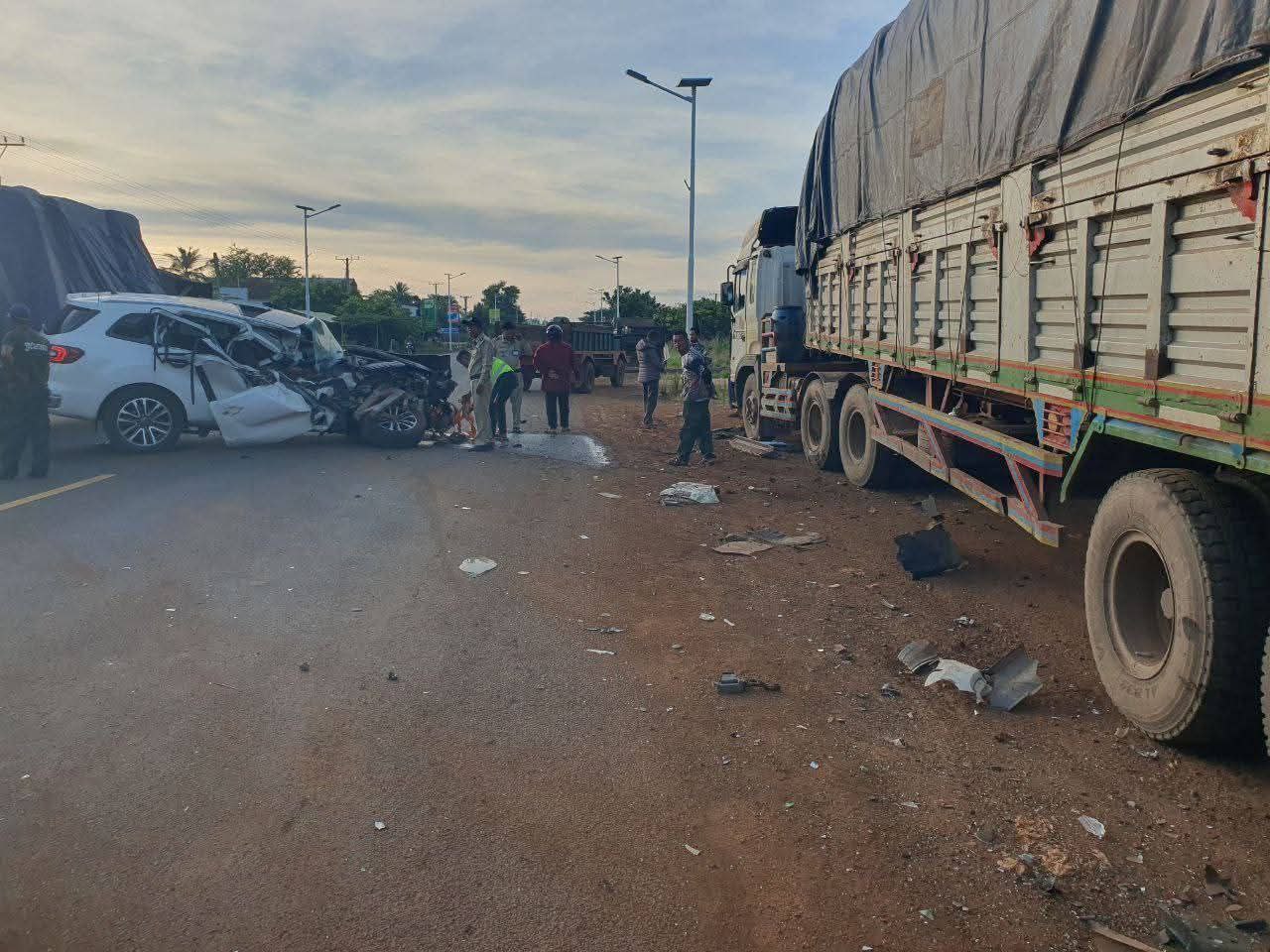 រថយន្ត Toyota Prius ខូចធ្ងន់ខ្ទេចផ្នែកខាងមុខទាំងស្រុង។ រថយន្ត Avanza ខូចធ្ងន់ផ្នែកខាងមុខ រថយន្តយីឌុបដឹកស្រូវត្រូវរងការខូចខាតផងដែរ។