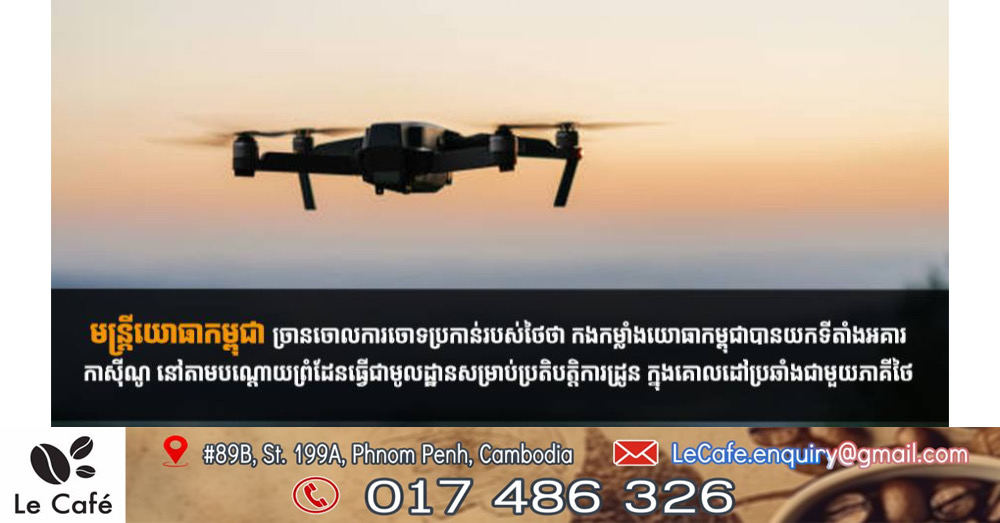 ភ្នំពេញ៖ បន្ទាប់ពីមានការចុះផ្សាយព័ត៌មានរបស់អ្នកសារព័ត៌មាន និងបណ្តាញសារព័ត៌មានរបស់ថៃ ដោយផ្អែកលើប្រភពពីកងទ័ពភូមិភាគទី២ថៃ បានចោទប្រកាន់ថាកងកម្លាំងយោធាកម្ពុជា បានយកទីតាំងអគារកាស៊ីណូ នៅតាមបណ្តោយព្រំដែនធ្វើជាមូលដ្ឋានសម្រាប់ប្រតិបត្តិការដ្រូន ក្នុងគោលដៅប្រឆាំងជាមួយភាគីថៃ។