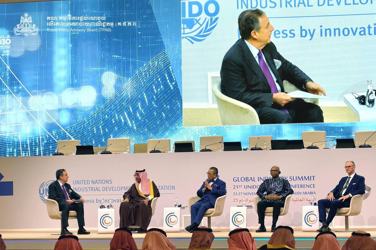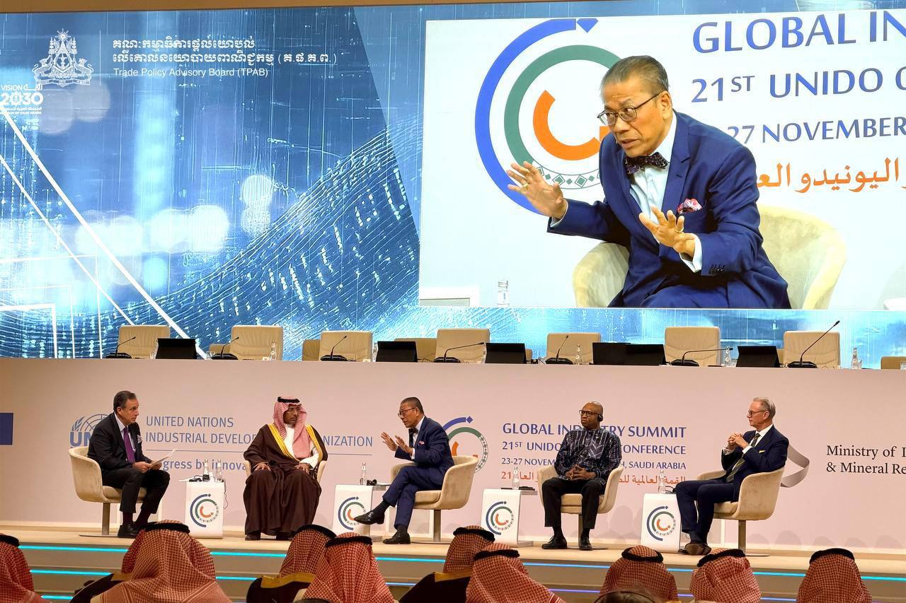 រាជធានីរីយ៉ាដ ព្រះរាជាណាចក្រអារ៉ាប៊ីសាអូឌីត — ថ្ងៃទី២៤ ខែវិច្ឆិកា ឆ្នាំ២០២៥ លោកសាស្ត្រាចារ្យបណ្ឌិតសភាចារ្យ ទេសរដ្ឋមន្ត្រី សុក ស៊ីផាន់ណា តំណាងដ៏ខ្ពង់ខ្ពស់បំផុត សម្ដេចមហាបវរធិបតី ហ៊ុន ម៉ាណែត នាយករដ្ឋមន្ត្រី នៃព្រះរាជាណាចក្រកម្ពុជា បានដឹកនាំគណៈប្រតិភូកម្ពុជាចូលរួមកិច្ចប្រជុំកំពូលឧស្សាហកម្មសកលឆ្នាំ២០២៥៖ សម័យប្រជុំលើកទី២១ នៃមហាសន្និបាតអង្គការសហប្រជាជាតិដើម្បីអភិវឌ្ឍន៍ឧស្សាហកម្ម (UNIDO)។