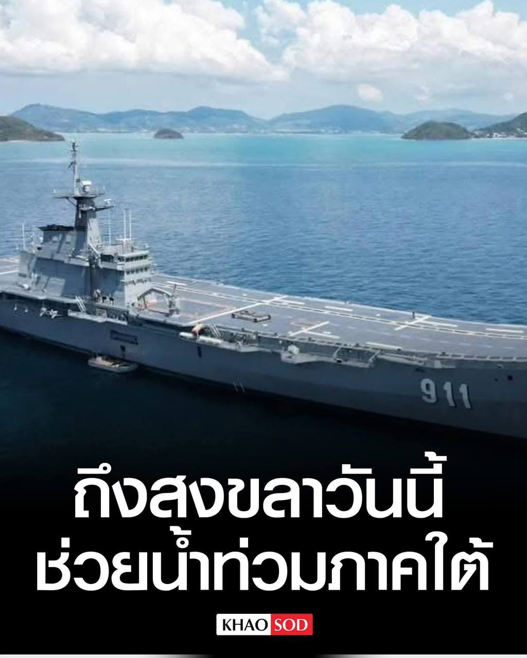 កងទ័ពជើងទឹក ថៃ ដាក់ពង្រាយ នាវាចម្បាំង បញ្ជូន នាវាចម្បាំង HTMS Chakri Naruebet និង ឧទ្ធម្ភាគចក្រ ចំនួន 2 គ្រឿង ដើម្បី ចល័ត ជំនួយ សម្រាប់ ទឹកជំនន់ ភាគខាងត្បូង