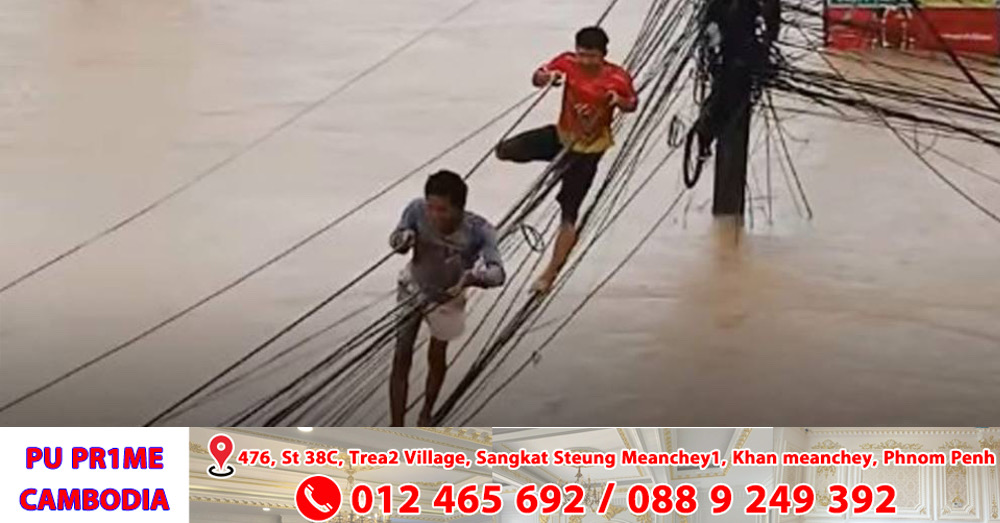 វីដេអូនេះបង្ហាញពីបុរសបីនាក់ឡើងខ្សែភ្លើងដើម្បីគេចពីទឹកជំនន់ខ្ពស់ និងភ្លៀងធ្លាក់ខ្លាំង។ ការបង្ហោះនេះទទួលបានមតិយោបល់គាំទ្រជាច្រើន និងត្រូវបានចែករំលែកជាង ១២,០០០ ដង ៕