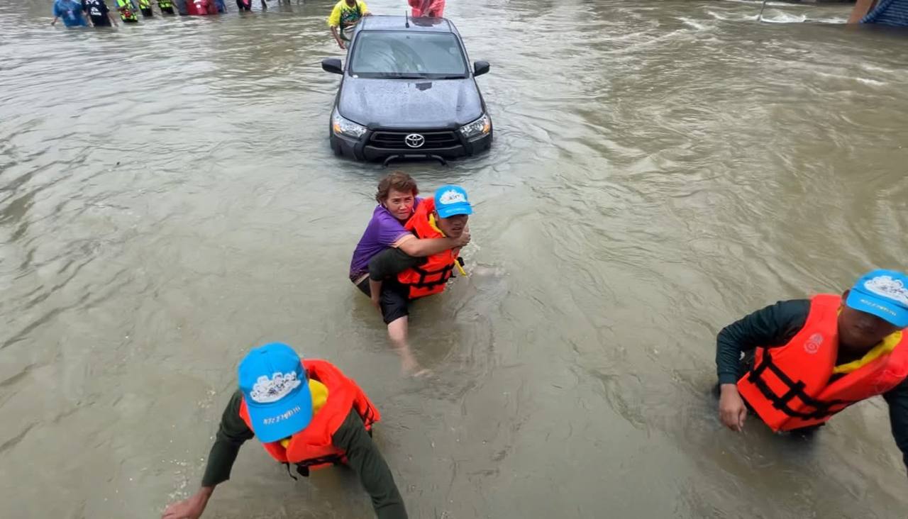 ក្រុមជួយសង្គ្រោះបានជម្លៀសប្រជាជនចេញពីផ្ទះដែលលិចទឹកជម្រៅ ៣ ម៉ែត្រ ដោយដឹកមនុស្សចាស់ សត្វចិញ្ចឹម និងអ្នកជំងឺដែលដេកលើគ្រែទៅកាន់កន្លែងសុវត្ថិភាព។