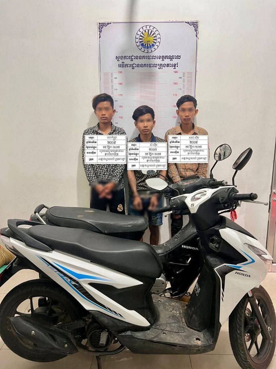 ខេត្តកណ្តាល ÷ សមត្ថកិច្ចឃាត់ខ្លួនក្រុមជនសង្ស័យ ករណីលួចមានស្ថានទម្ងន់ទោស (កាប់ប្លន់យកម៉ូតូ) ពីអ្នកធ្វើដំណើរតាមផ្លូវ បានចំនួន០៣នាក់ហើយ ក្នុងបក្ខពួកចំនួន០៤នាក់ ក្រោយធ្វើការស្រាវជ្រាវអស់រយ:ពេល១៣ថ្ងៃ ដោយក្រុមជនសង្ស័យបានធ្វើសកម្មកាប់ប្លន់យកម៉ូតូចំនួន០៣លើក។