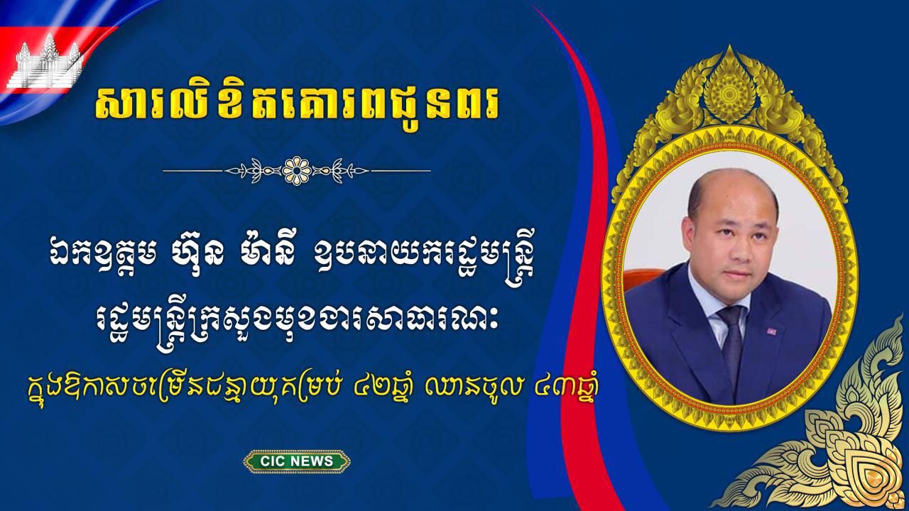 ភ្នំពេញ ៖ ក្នុងឱកាសដ៏នក្ខត្តឫក្សដ៏ឧត្ដុង្គឧត្ដមនៃពិធីខួបកំណើត ឯកឧត្តម ហ៊ុន ម៉ានី ឧបនាយករដ្ឋមន្ត្រី រដ្ឋមន្ត្រីក្រសួងមុខងារសាធារណៈ គម្រប់ ៤២ឆ្នាំ ឈានចូល ៤៣ឆ្នាំ នាថ្ងៃទី២៧ ខែវិច្ឆិកា ឆ្នាំ២០២៥, ឯកឧត្ដម នាយឧត្ដមសេនីយ៍ វង្ស ពិសេន អគ្គមេបញ្ជាការនៃកងយោធពលខេមរភូមិន្ទ ព្រមទាំងថ្នាក់ដឹកនាំ នាយទាហាន នាយទាហានរង និងពលទាហានទាំងអស់នៃកងយោធពលខេមរភូមិន្ទ សូមបួងសួងចំពោះគុណបុណ្យព្រះរតនត្រ័យកែវទាំងបី និងវត្ថុស័ក្តិសិទ្ធិទាំងឡាយក្នុងលោក សូមព្រះអង្គប្រោសប្រទាននូវសព្ទសាធុការពរ បវរមហាប្រសើរជូន ឯកឧត្តម ហ៊ុន ម៉ានី សូមប្រកបដោយសុខភាពល្អបរិបូណ៌ កម្លាំងកាយមាំមួន ប្រាជ្ញាឈ្លាសវៃ ជន្មាយុយឺនយូរ ដើម្បីដឹកនាំក្រសួងមុខងារសាធារណៈឱ្យកាន់តែរីកចម្រើនថែមទៀត។