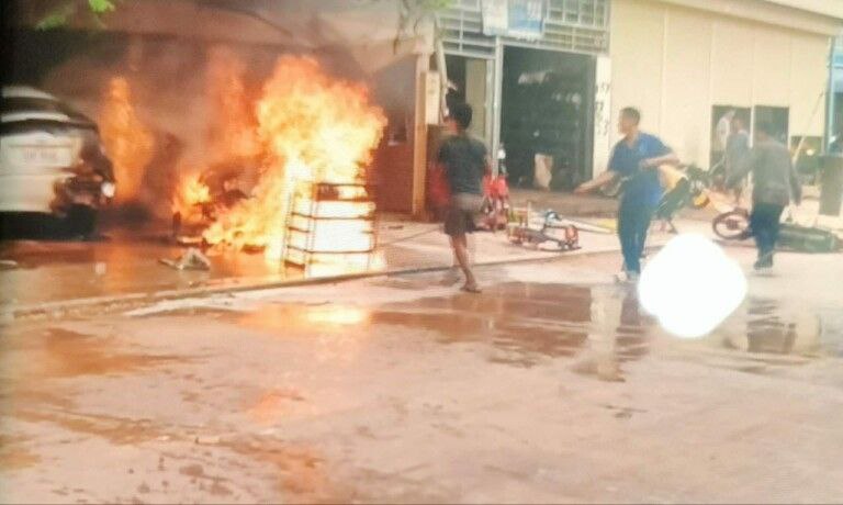 សូមបញ្ជាក់ថា ករណីឆាបឆេះរថយន្ត និងម៉ូតូនេះ ត្រូវបានប្រជាពលរដ្ឋជួយយកបំពង់បាញ់ពន្លត់អគ្គិភ័យមកជួយបាញ់ពន្លត់ និងទាញទុយោទឹកបាញ់ ព្រមទាំងដង ទឹកមកជះពន្លត់ ទើបអាចទប់ទល់នឹងស្ថានភាពភ្លើងឆេះនេះបាន ពេលនោះក៏ឃើញមានរថយន្តពន្លត់អគ្គិភ័យរបស់ស្នងការ មកជួយបាញ់ពន្លត់ ប្រើប្រាស់ទឹកអស់១រថយន្ត ។ ការឆាបឆេះរថយន្ត និងម៉ូតូអស់ ទាំងស្រុងនេះ បណ្តាលមកពីម្ចាស់ធ្វេសប្រហែស ក្នុងការបូមសាំងដាក់ដបលក់ ។ តម្លៃនៃការខូចខាត បើគិតជាទឹកប្រាក់មានប្រមាណជា ៥ ០០០ដុល្លារ ។