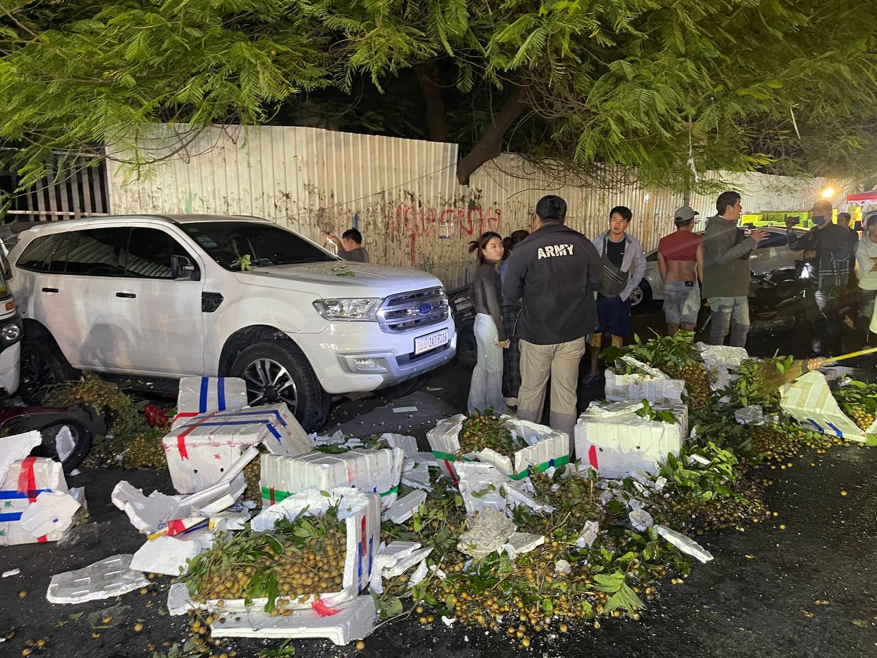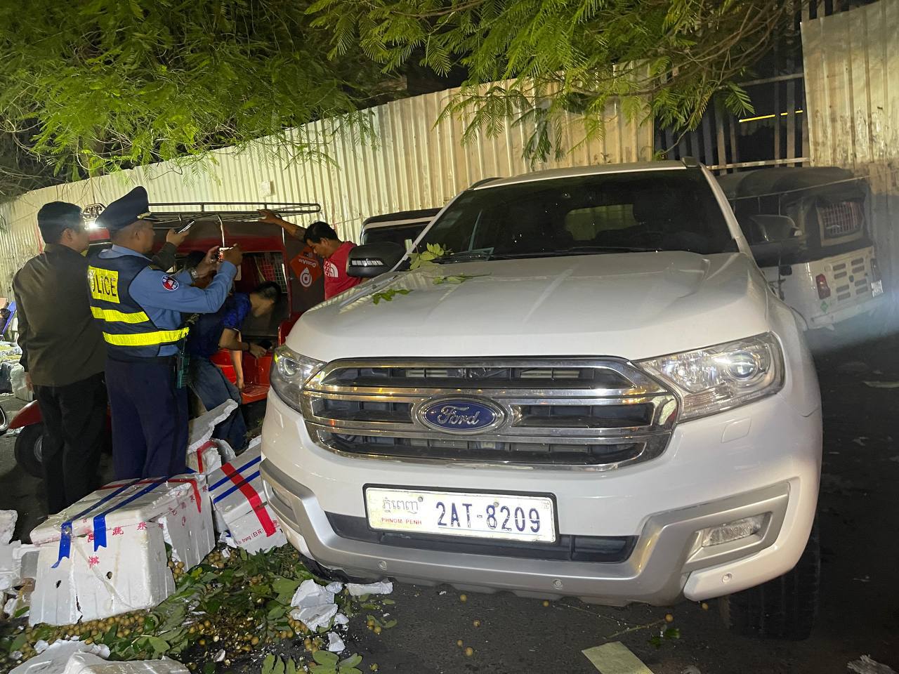 ភ្នំពេញ៖ បុរសម្នាក់បានបើករថយន្តម៉ាក fordមួយគ្រឿង បើករយ៉ែថយក្រោយចេញពីក្នុងKTVមួយកន្លែងបណ្តាលឲ្យជ្រុលទៅបុករះម៉ូតូរុឺម៉ករួមទាំងមានសម្ភារះផ្លែឈើមួយចំនួនធំ បង្កឲ្យមានការភ្ញាក់ផ្អើលកាលពីវេលាម៉ោង១០:៣០នាទីយប់ ថ្ងៃទី២៧ខែវិច្ចិការ ឆ្នាំ២០២៥ ចំណុចផ្សារនាគមាសស្ថិតនៅលើផ្លូវ២៣០ សង្កាត់ផ្សារដើមគ ខណ្ឌទួលគោក រាជធានីភ្នំពេញ។