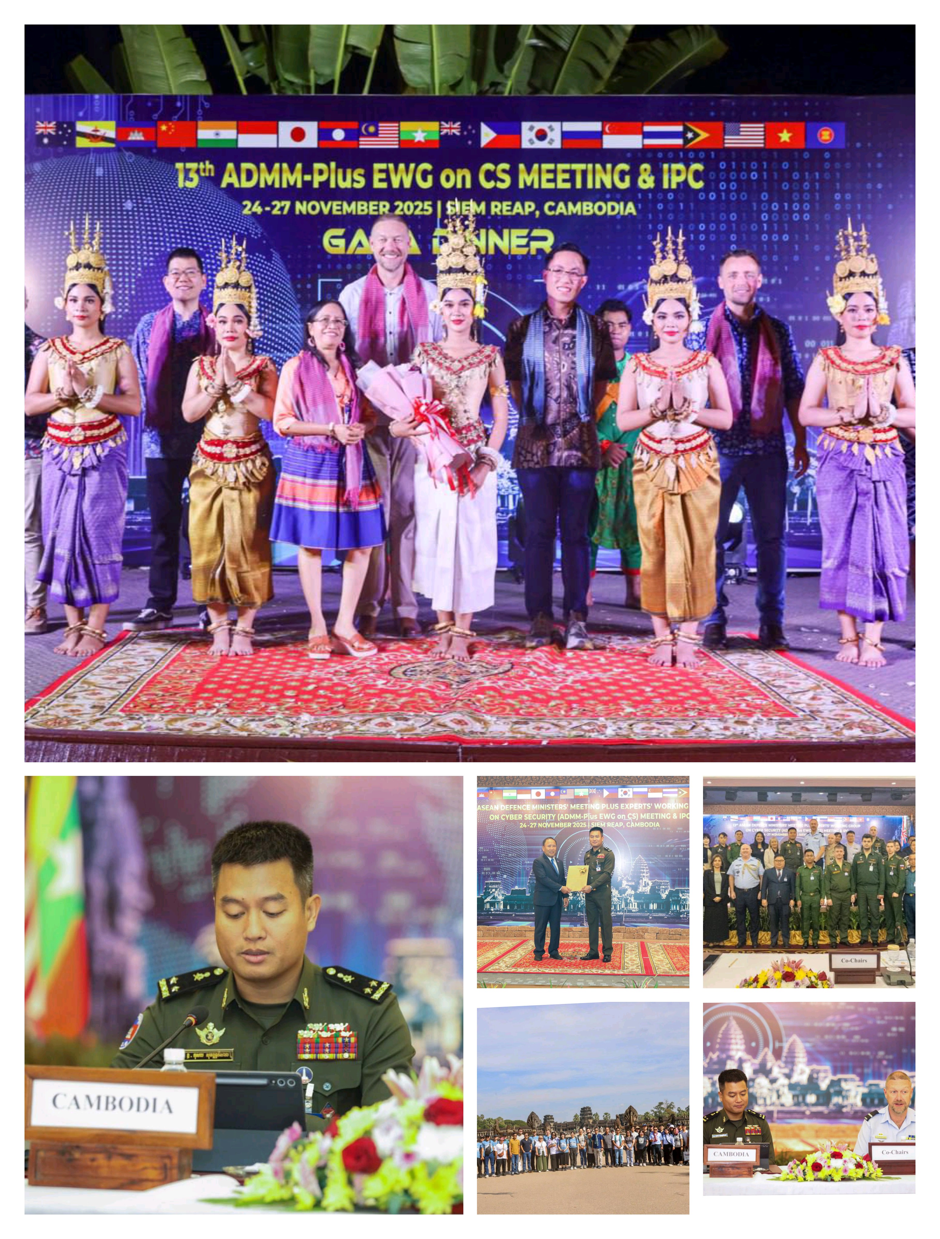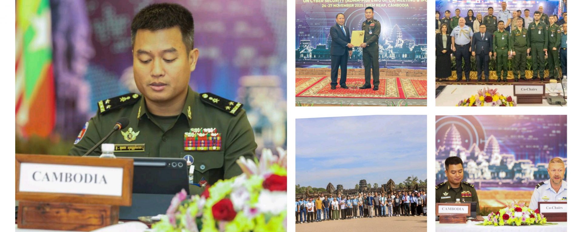 ខេត្តសៀមរាប៖ ដោយមានការអនុញ្ញាតដ៏ខ្ពង់ខ្ពស់ពីលោកនាយឧត្តមសេនីយ៍ ទៀ សីហា ឧបនាយករដ្ឋមន្រ្តី រដ្ឋមន្រ្តីការពារជាតិ នាយកដ្ឋានបញ្ជូនសារ ក្រសួងការពារជាតិ តំណាងឱ្យក្រសួងការពារជាតិកម្ពុជា និងជាសហប្រធានក្រុមការងារជំនាញស្ដីពីសន្តិសុខសាយប័រជាមួយសហប្រធានអូស្ត្រាលី សម្រាប់ជុំទី៣ ចាប់ពីឆ្នាំ២០២៤ ដល់ឆ្នាំ២០២៧ បានរៀបចំធ្វើម្ចាស់ផ្ទះកិច្ចប្រជុំក្រុមការងារជំនាញស្ដីពី សន្ដិសុខសាយប័រ លើកទី១៣ ក្នុងក្របខ័ណ្ឌកិច្ចប្រជុំរដ្ឋមន្រ្តីការពារជាតិអាស៊ាន-បូក ដែលបានប្រព្រឹត្តទៅចាប់ពីថ្ងៃទី២៤ ដល់ថ្ងៃទី២៧ ខែវិច្ឆិកា ឆ្នាំ២០២៥ នៅសណ្ឋាគារអង្គរសេនជូរី រីសត&ស្ប៉ា ក្នុងខេត្តសៀមរាប ព្រះរាជាណាចក្រកម្ពុជា។