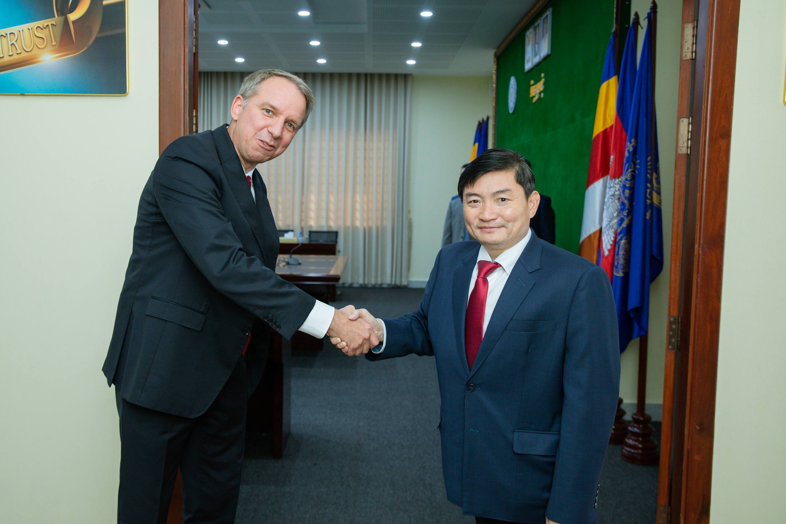 នាឱកាសនោះ លោករដ្ឋមន្ត្រី បានសម្តែងនូវការស្វាគមន៍យ៉ាងកក់ក្តៅចំពោះ លោក Thomas Finken និងបានបញ្ជាក់ជូននូវការគាំទ្រយ៉ាងពេញទំហឹងចំពោះគំនិតផ្តួចផ្តើមក្នុងការចង់បានកិច្ចសហប្រតិបត្តិការរវាងធនាគារអភិវឌ្ឍន៍អាល្លឺម៉ង់ (KFW) ជាមួយក្រសួងការងារ និងបណ្ដុះបណ្ដាលវិជ្ជាជីវៈ ជាពិសេសពាក់ព័ន្ធនឹងវិស័យសន្តិសុខសង្គម។ បន្ថែមពីនេះ លោករដ្ឋមន្រ្តី ក៏បានលើកឡើងនូវកាលានុវត្តភាពនៃកិច្ចសហការជាមួយធនាគារអភិវឌ្ឍន៍អាល្លឺម៉ង់ (KFW) លើវិស័យបណ្ដុះបណ្ដាលវិជ្ជាជីវៈ ក្នុងគោលបំណងអភិវឌ្ឍធនធានមនុស្សនៅប្រទេសកម្ពុជា។