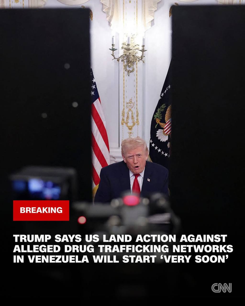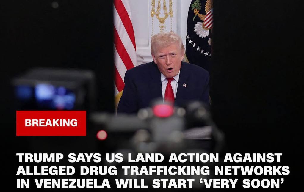 ប្រធានាធិបតី ដូណាល់ ត្រាំ បានណែនាំកាលពីថ្ងៃព្រហស្បតិ៍ថា សហរដ្ឋអាមេរិកកំពុងរៀបចំចាត់វិធានការថ្មីប្រឆាំងនឹងបណ្តាញជួញដូរគ្រឿងញៀនដែលត្រូវបានចោទប្រកាន់នៅក្នុងប្រទេសវេណេស៊ុយអេឡា ដោយប្រាប់សមាជិកយោធាក្នុងអំឡុងពេលនៃការហៅទូរស័ព្ទ Thanksgiving ថា កិច្ចខិតខំប្រឹងប្រែងសម្រាប់ការវាយប្រហារលើដីគោកនឹងចាប់ផ្តើម “ឆាប់ៗនេះ”។