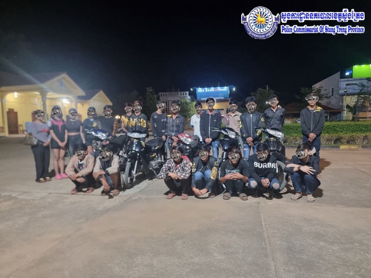 ខេត្តស្ទឹងត្រែង÷អនុវត្តតាមគោលការណ៍ដឹកនាំរបស់ នាយឧត្តមសេនីយ៍ ស ថេត អគ្គស្នងការនគរបាលជាតិ និងអនុវត្តតាមការណែនាំ របស់លោក សរ សុពុត្រា អភិបាល នៃគណៈអភិបាលខេត្តស្ទឹងត្រែង នៅយប់រំលងអាធ្រាត្រឈានចូលថ្ងៃទី៣០ ខែវិច្ឆិកា ឆ្នាំ២០២៥ លោកឧត្តមសេនីយ៍ទោ សារី បុត្រសត្យា ស្នងការ នៃស្នងការដ្ឋាននគរបាលខេត្តស្ទឹងត្រែង បាន ឲ្យកម្លាំងអន្តរាគមន៍ ចុះល្បាតដល់ត្រង់ចំណុចស្ថានីយប្រេង ឥន្ធនៈ(peace) ក៍បាន ប្រទះឃើញក្មេងៗចំនួន ០៣ ក្រុម កំពុងតែជួបជុំប្រមូលផ្ដុំពពាក់ពពូនគ្នា ខ្លះផឹកស៊ី ខ្លះលេងបៀរ ខ្លះអង្គុយចុចទូរស័ព្ទ ដែលទង្វើទាំងអស់នេះធ្វើឲ្យខូច និងបាត់បង់សណ្ដាប់ធ្នាប់សាធារណៈនៅពេលយប់ (បង្ករការភ័យខ្លាចដល់ប្រជាពលរដ្ឋ)។