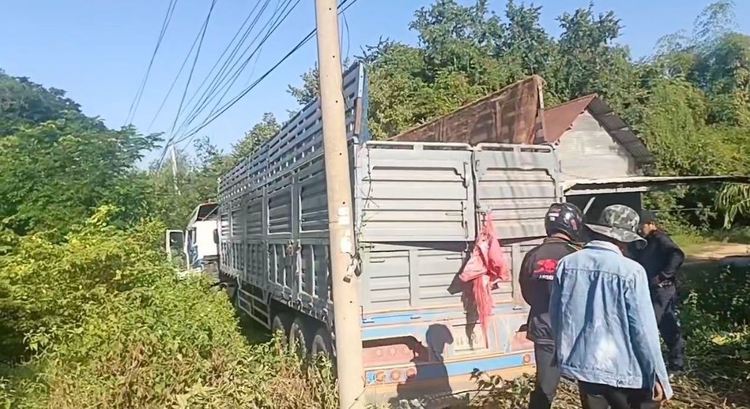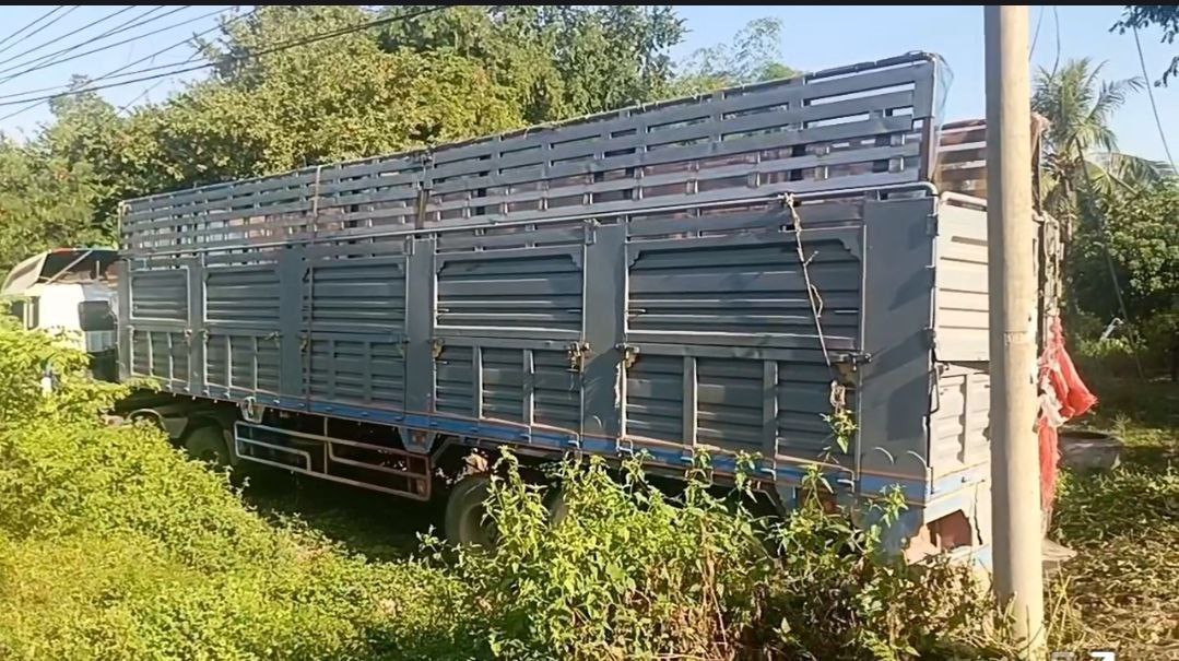 សង្ស័យតៃកុង ងងុយដេករថយន្តធុនធំបានរេចង្កូតធ្លាក់ផ្លូវនិងបន្តទៅបុករះផ្ទះប្រជាពលរដ្ឋខូចខាតអស់០២ខ្នង