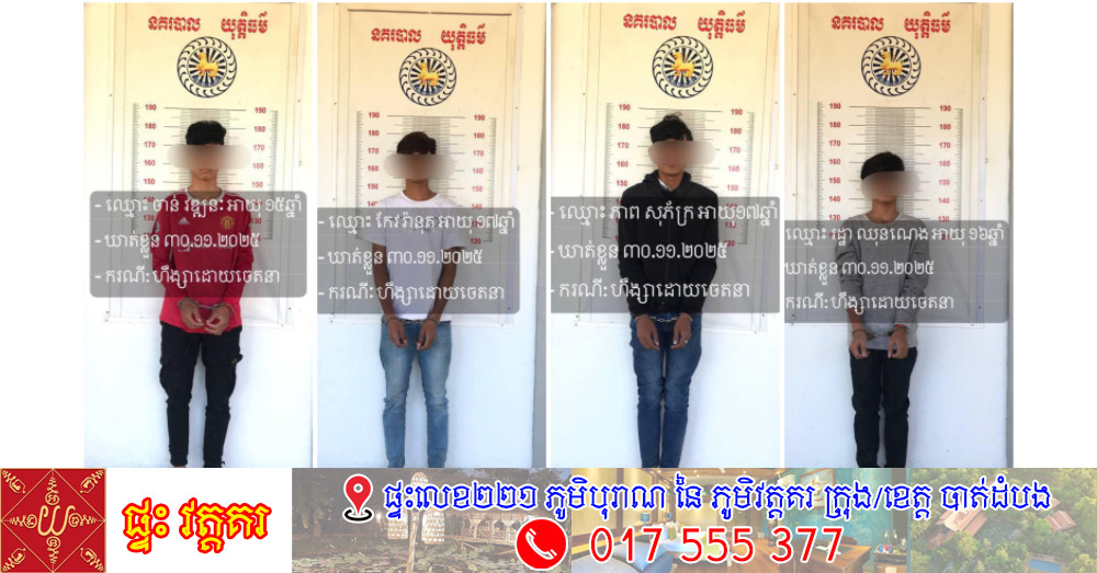 បច្ចុប្បន្នមុខសញ្ញាទាំង៤នាក់ ត្រូវបានកម្លាំងនគរបាលស្រុកកសាងសំណុំរឿងបញ្ជូនមកការិយាល័យជំនាញព្រហ្មទណ្ឌ ចំណាត់ការតាមនិតិវិធី៕
