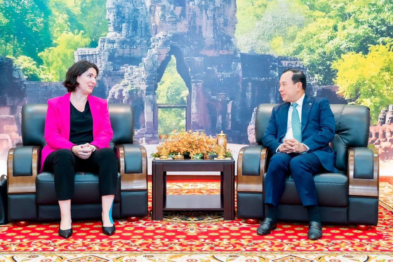 ភ្នំពេញ ៖ លោក ហួត ហាក់ រដ្ឋមន្ត្រីក្រសួងទេសចរណ៍ អនុញ្ញាតជូនលោកស្រី Tania Meyer នាយិកាធនាគារពិភពលោក (WB) ប្រចាំកម្ពុជា និងសហការី ចូលជួបសម្តែងការគួរសម រាយការណ៍ពីសកម្មភាពការងារនៅកម្ពុជាកន្លងមក និងពិភាក្សាអំពីការបង្កើតកិច្ចសហប្រតិបត្តិការក្នុងវិស័យទេសចរណ៍ជាមួយក្រសួងទេសចរណ៍ ដែលមានគោលដៅជំរុញការអភិវឌ្ឍវិស័យទេសចរណ៍សហគមន៍ និងអេកូទេសចរណ៍ ព្រមទាំងការលើកស្ទួយជីវភាពប្រជាជនក្នុងសហគមន៍ នៅទីស្តីការក្រសួង នៅថ្ងៃទី១ ខែធ្នូ ឆ្នាំ២០២៥ ។