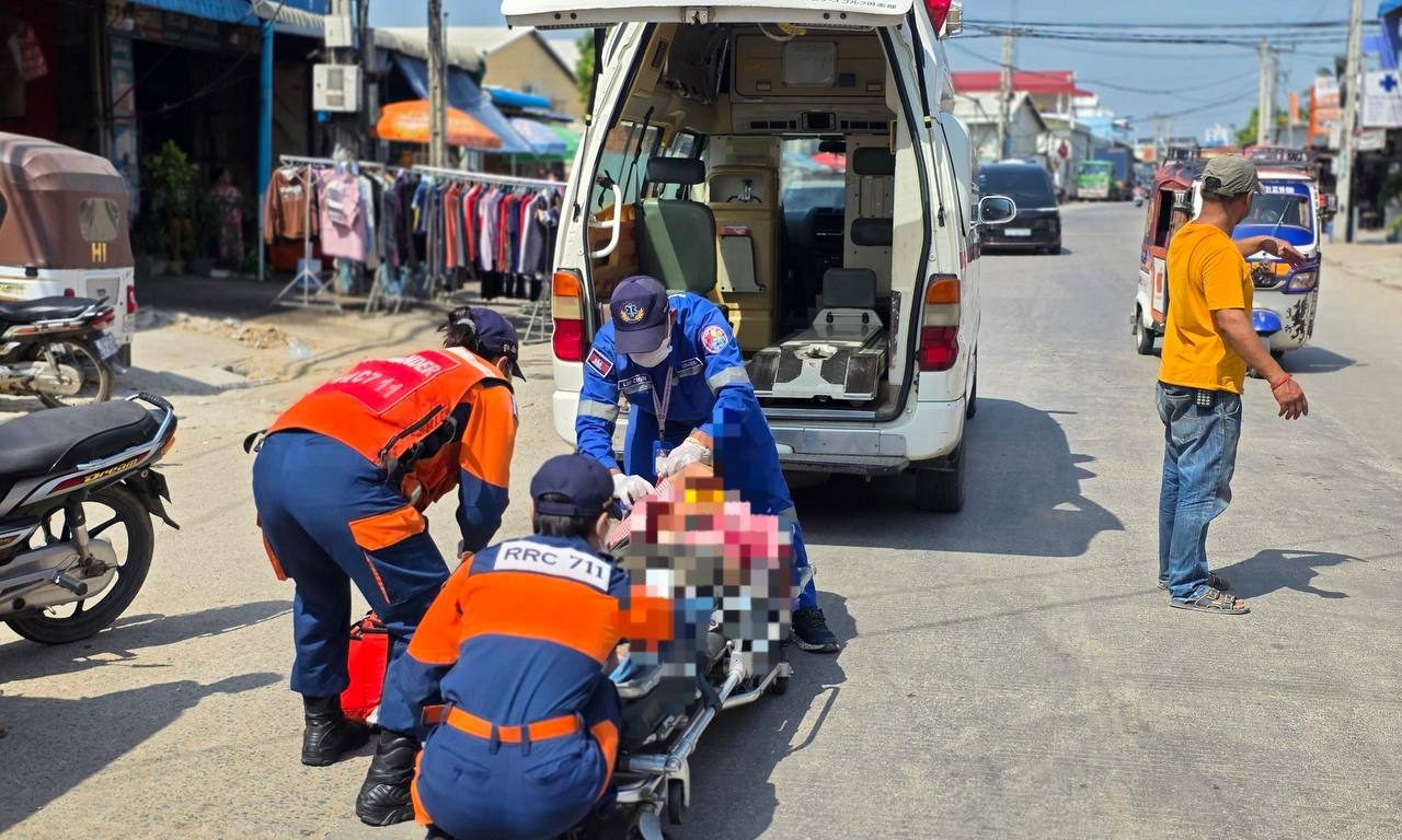 ភ្នំពេញ៖ បុរសម្នាក់ដេីរឆ្លងផ្លូវមិនប្រយ័ត្នត្រូវម៉ូតូជិះលឿនបុកបណ្តាលឲ្យរងរបួសបាក់ជេីងម្ខាងត្រូវបានកងសង្គ្រោះបន្ទាន់៧១១កងពលតូចលេខ៧០ដឹកទៅមន្ទីរពេទ្យភ្លាមៗ។