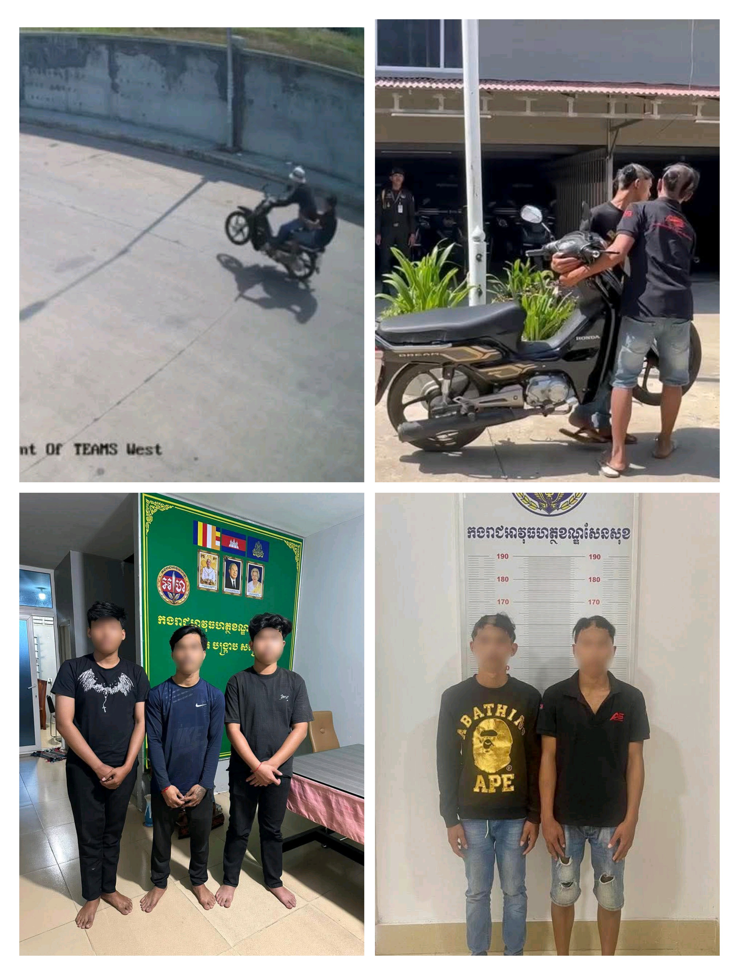ភ្នំពេញ÷ ក្មេងទំនើង ០៥នាក់ ត្រូវអាវុធហត្ថរាជធានីភ្នំពេញ តាមបណ្ដាមូលដ្ឋានខណ្ឌ ឃាត់ខ្លួនយកមកអប់រំណែនាំជាបន្តបន្ទាប់ ពាក់ព័ន្ធករណី បង្ហោះម៉ូតូលើផ្លូវសាធារណៈ និងកែច្នៃបំពង់ស៊ីម៊ាំងម៉ូតូ បង្កសម្លេងរំខានដល់ពលរដ្ឋ និងបាត់បង់សណ្ដាប់ធ្នាប់សាធារណ:។