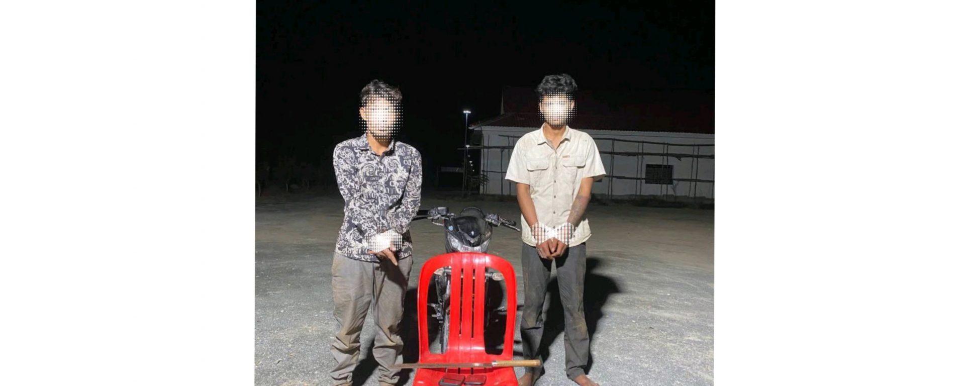 ១.ឈ្មោះ បូ ប៊ុនថាញ ភេទប្រុស អាយុ២៧ឆ្នាំ រស់នៅភូមិអាយាន ឃុំពាំងល្វា ស្រុកសាមគ្គីមុនីជ័យ ជាអ្នកកាន់ដាវនិង២:ឈ្មោះ បឿន ម៉េងហុង ភេទប្រុស អាយុ ២៣ឆ្នាំ រស់នៅភូមិ អាយាន ឃុំពាំងល្វា ស្រុកសាមគ្គីមុនីជ័យ និង ដកហូតម៉ូតូចំនួន០១គ្រឿង,ដាវ០១ ដើម និង ទូរស័ព្ទចំនួន០២គ្រឿង។
