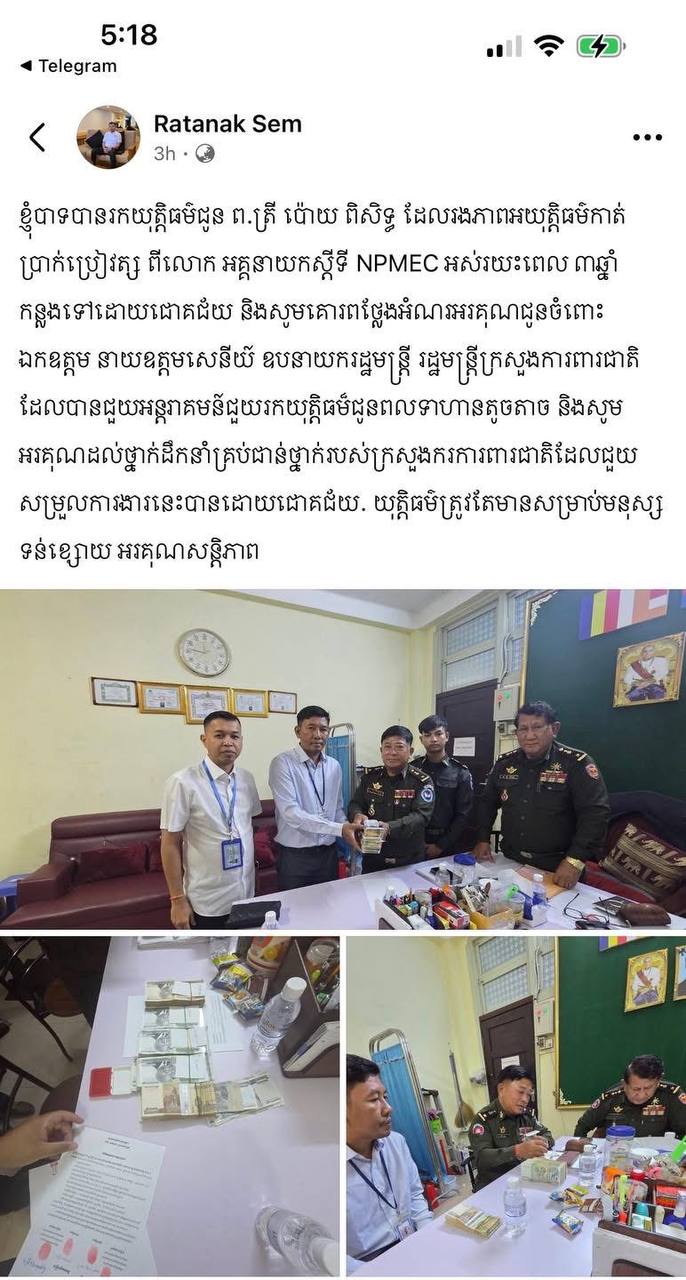 ភ្នំពេញ ៖ មន្រ្តីយោធា ប៉ោយ ពិសិទ្ធ ដែលបម្រើការងារនៅមជ្ឈមណ្ឌលជាតិរក្សាសន្តិភាព (NPMEC) និងត្រូវបានមេអង្គភាពកាត់ប្រាក់បៀវត្សរយៈពេល៣ឆ្នាំ ពេលនេះទទួលបានយុត្តិធម៌ហើយ ក្រោយមានកិច្ចអន្តរាគមន៍ ពីនាយឧត្តមសេនីយ៍ ទៀ សីហា ឧបនាយករដ្ឋមន្ត្រី រដ្ឋមន្ត្រីក្រសួងការពារជាតិ។